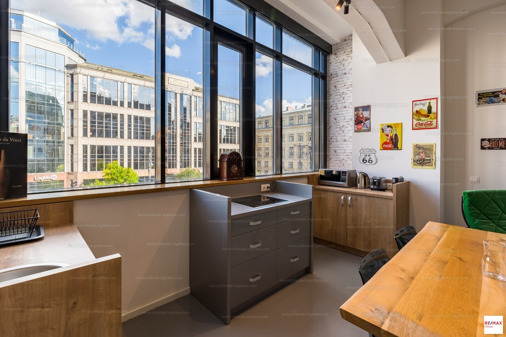 In District V, LOFT ASTORIA, we offer a 70 sqm upstairs, furnished, spacious, sunny, industrial, youthful loft apartment for long-term rent.