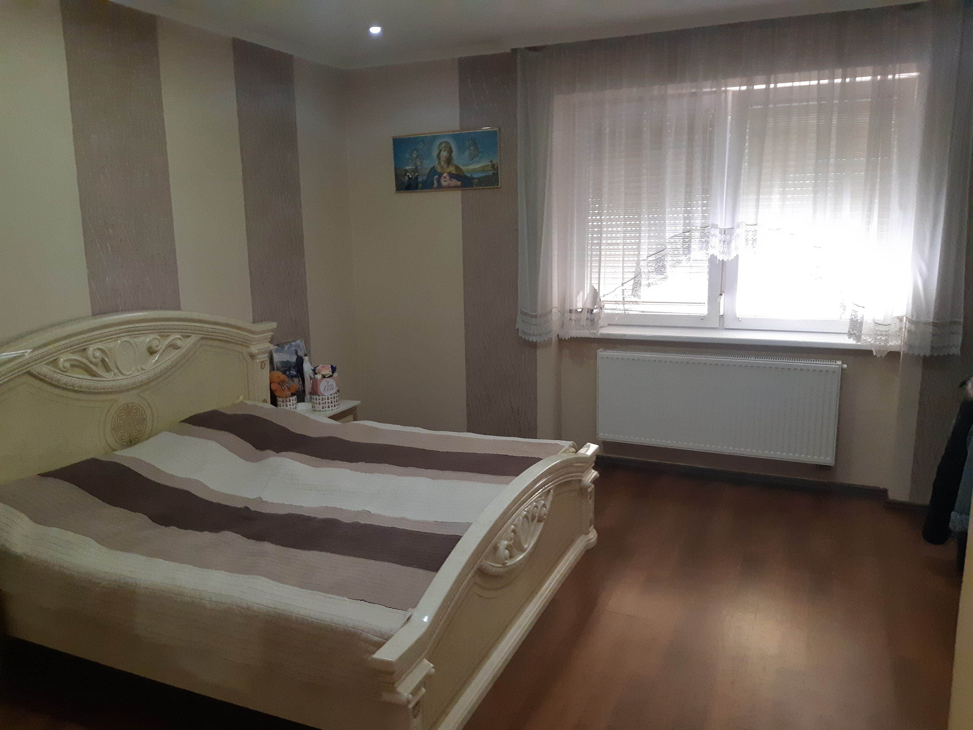 Az ingatlan elosztása: 3 külön nyíló szoba, nappali, konyha + étkező, fürdőszoba WC-vel