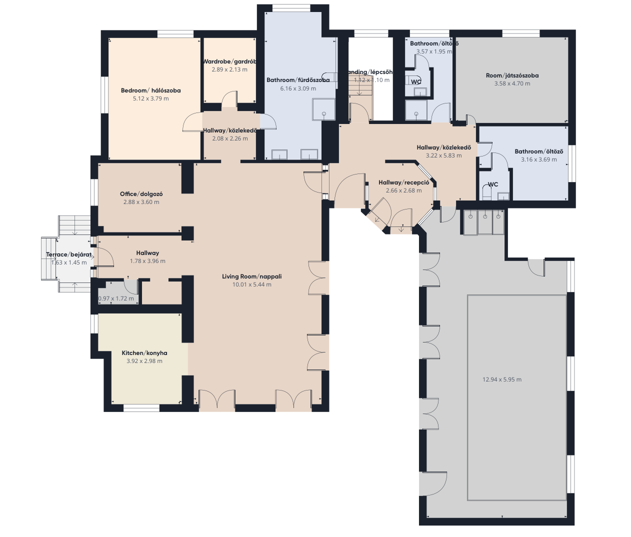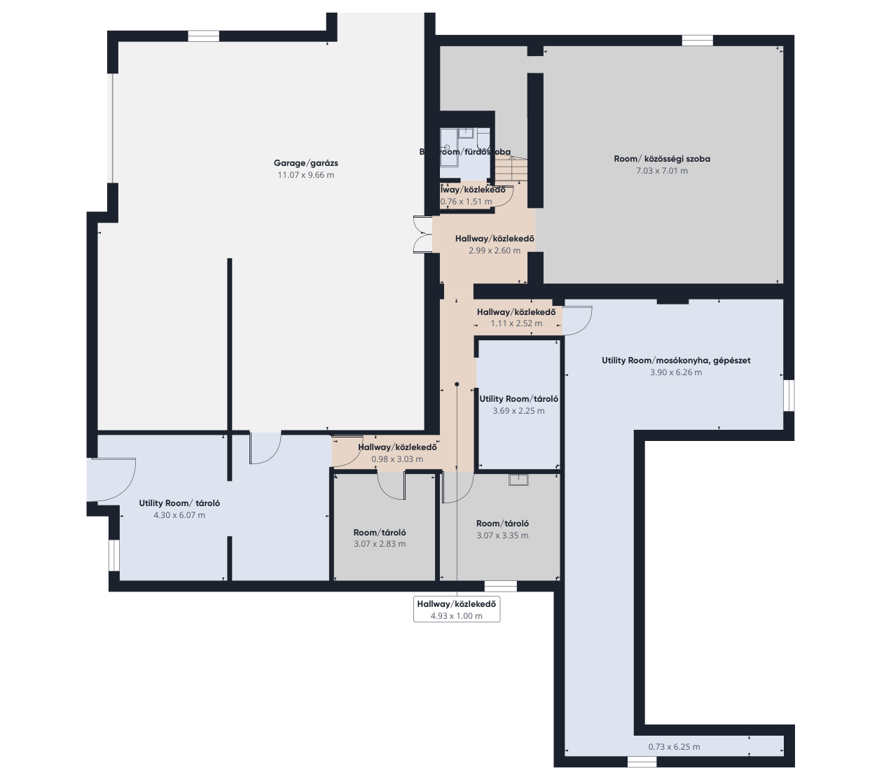 • Több mint 500 m² beépített tér (földszint + teljes alagsor), benne: