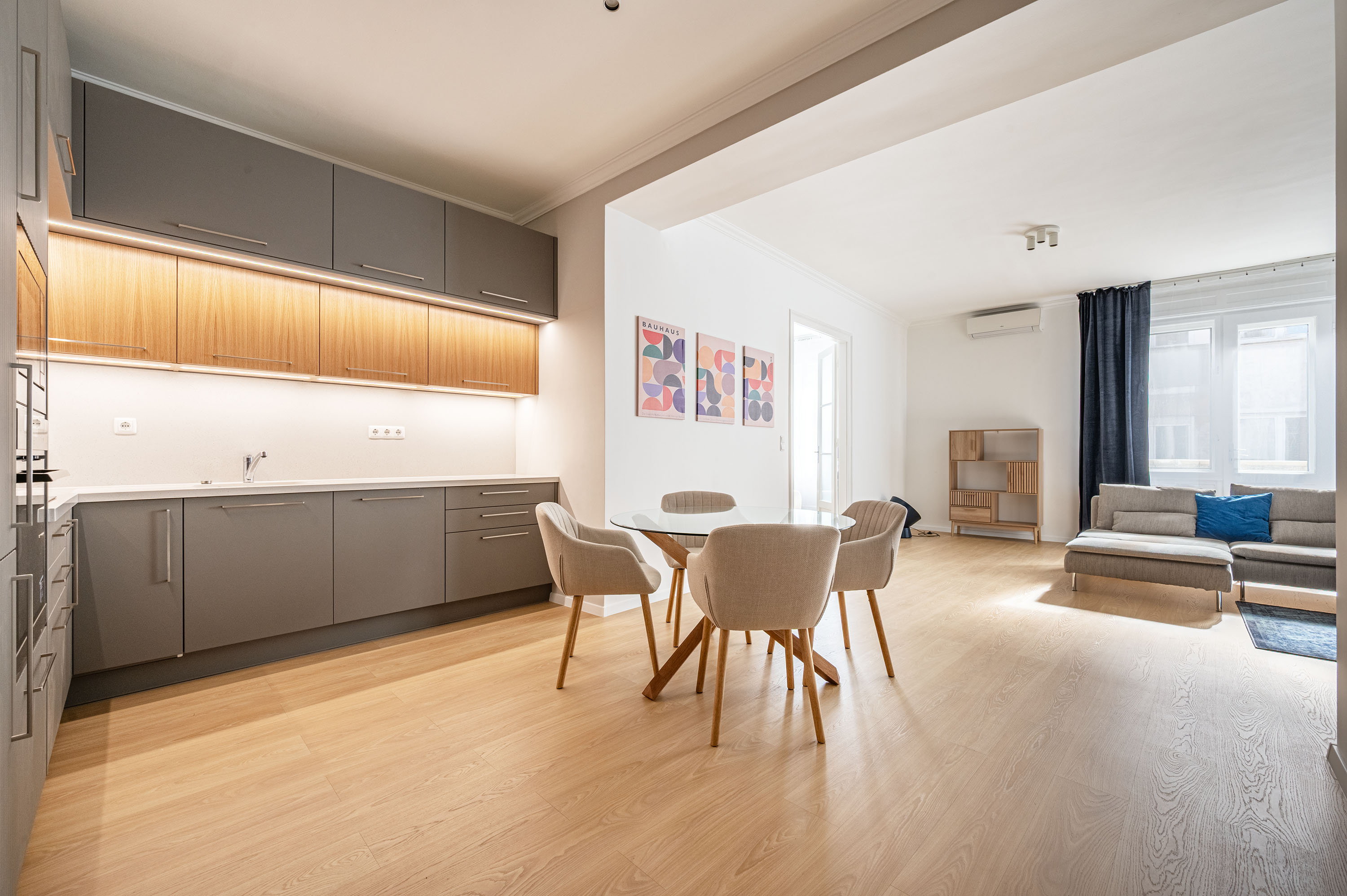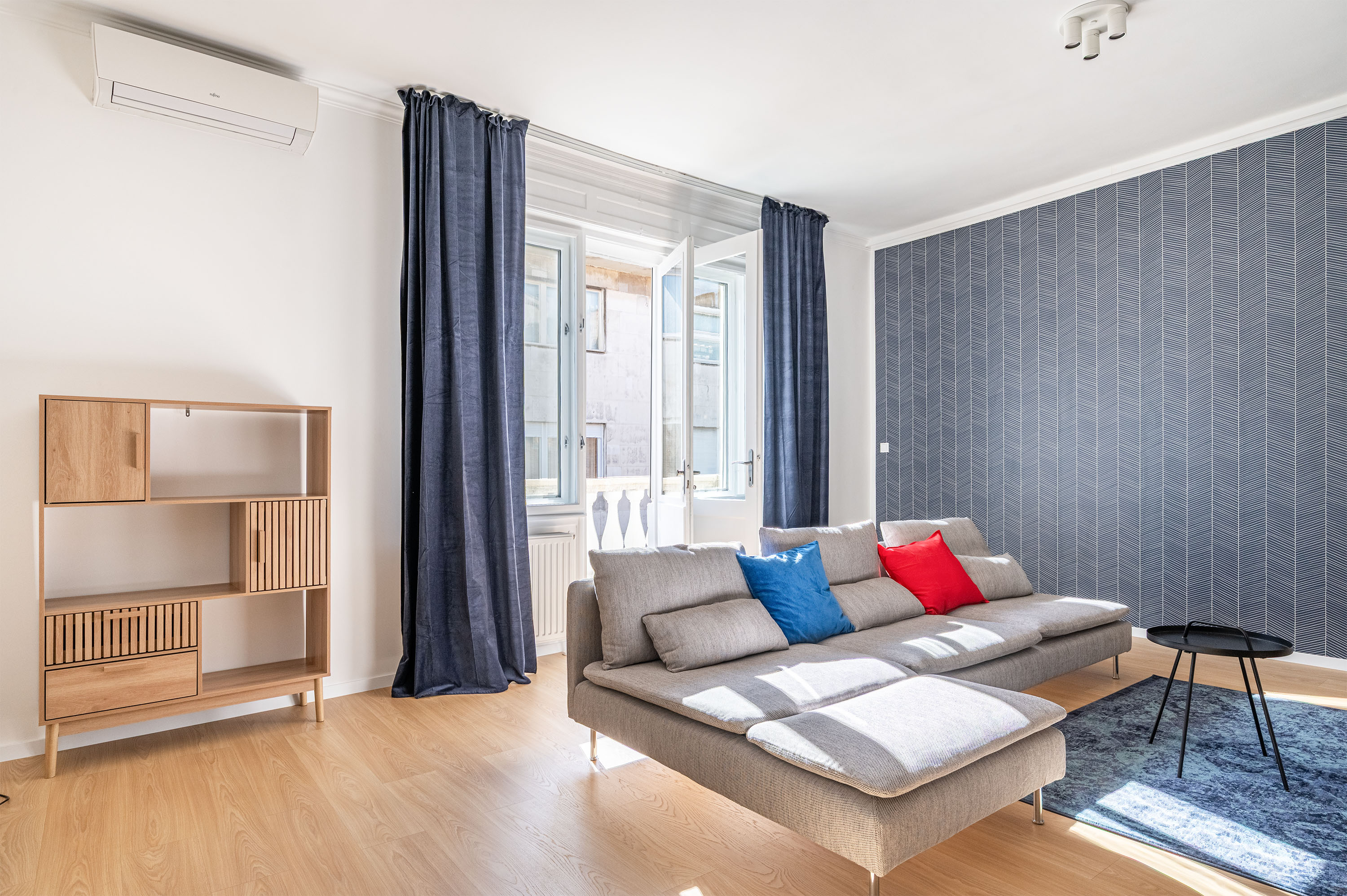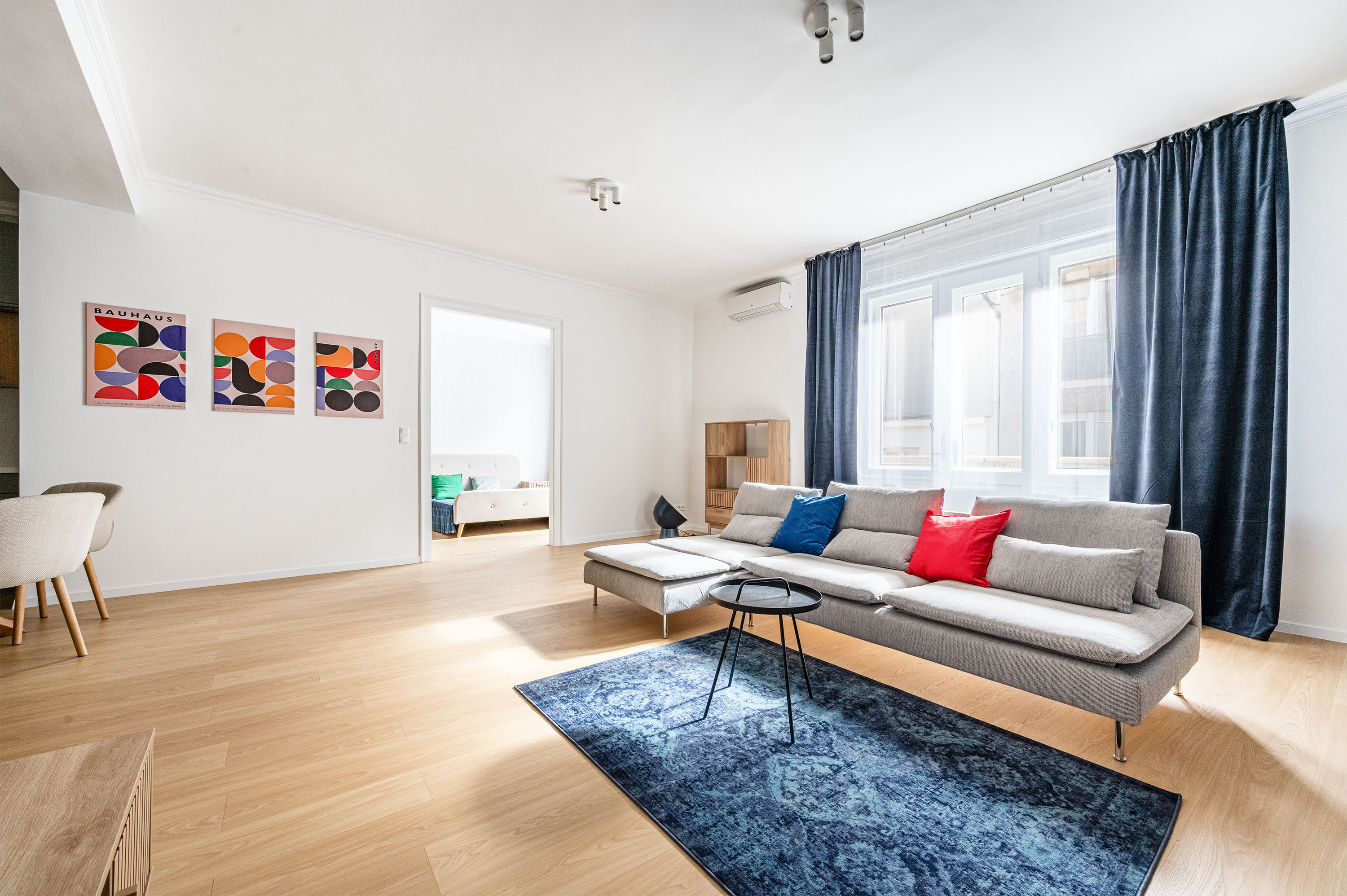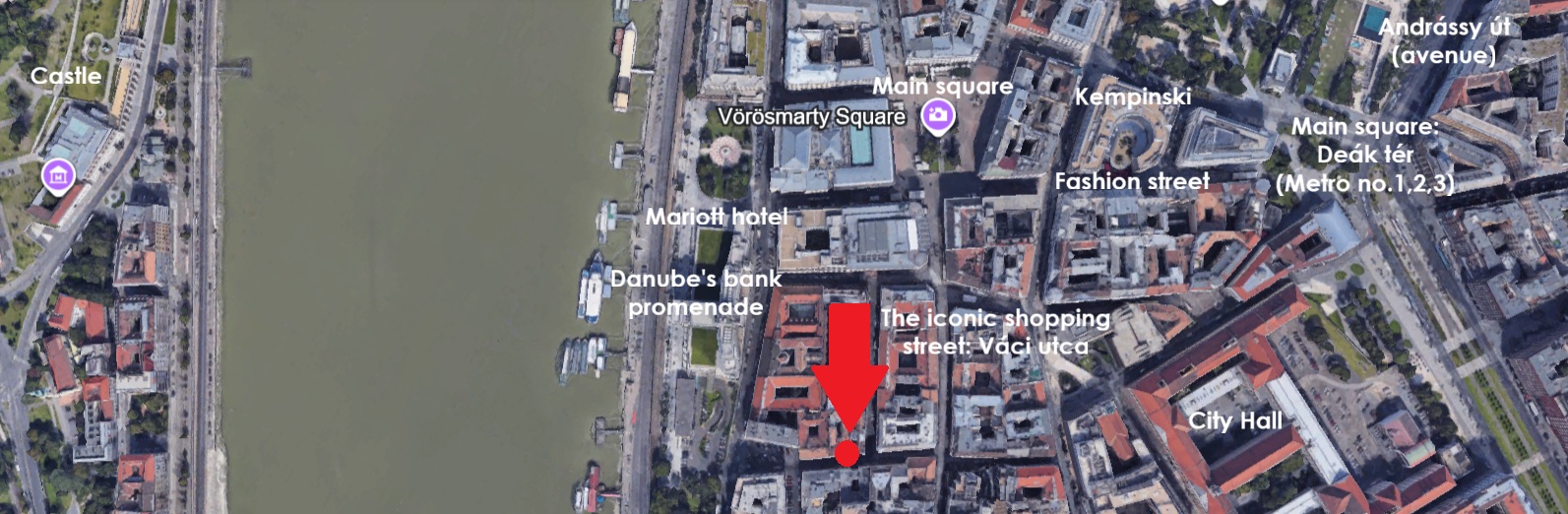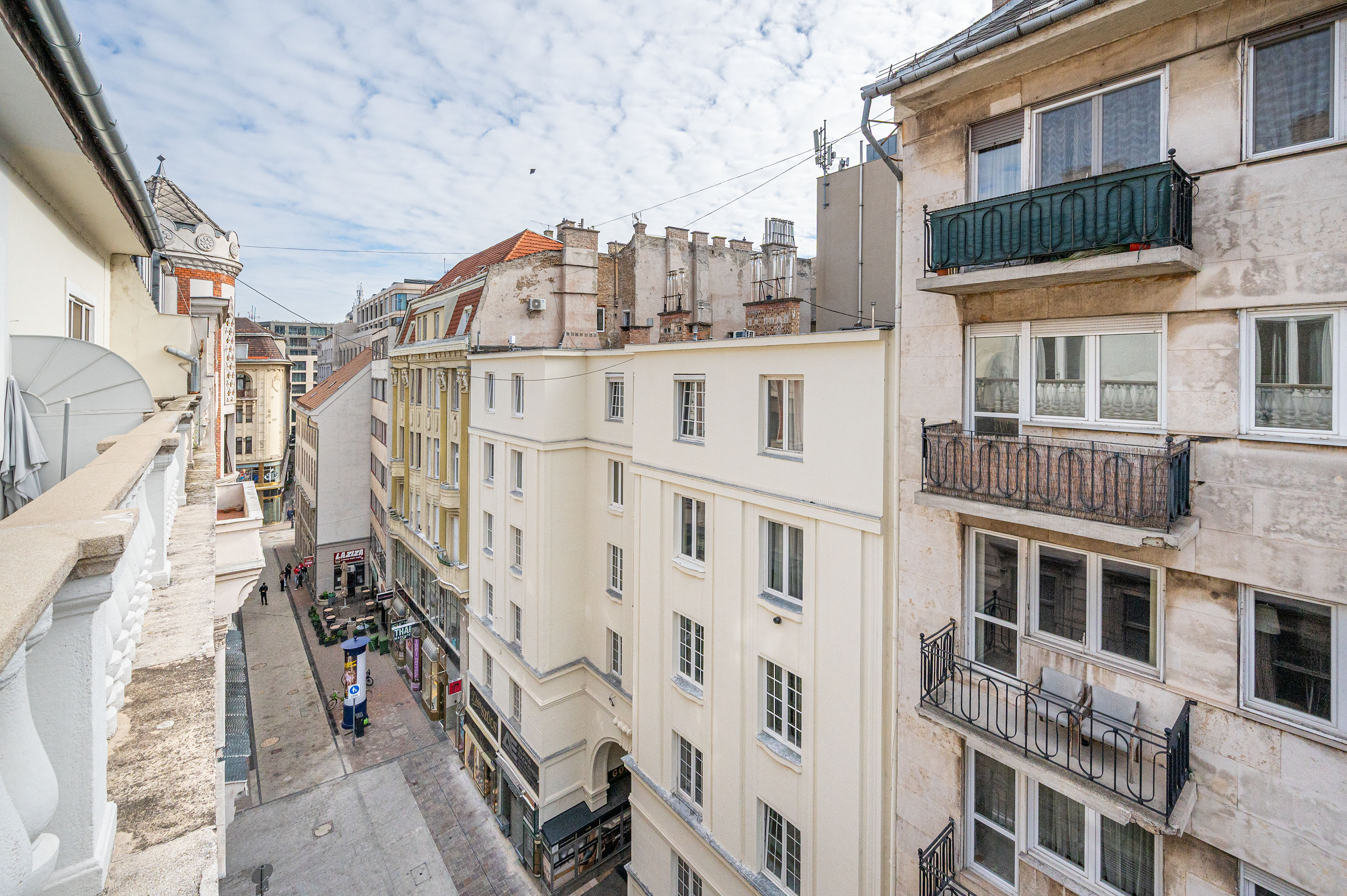 A lakás nagy ablakfelületeinek köszönhetően rendkívül világos, tágas terekkel és kellemes hangulattal rendelkezik. A Váci utca, a Duna-korzó és a Vörösmarty tér néhány lépésre található – ideális választás azok számára, akik szeretik a belváros pezsgését.