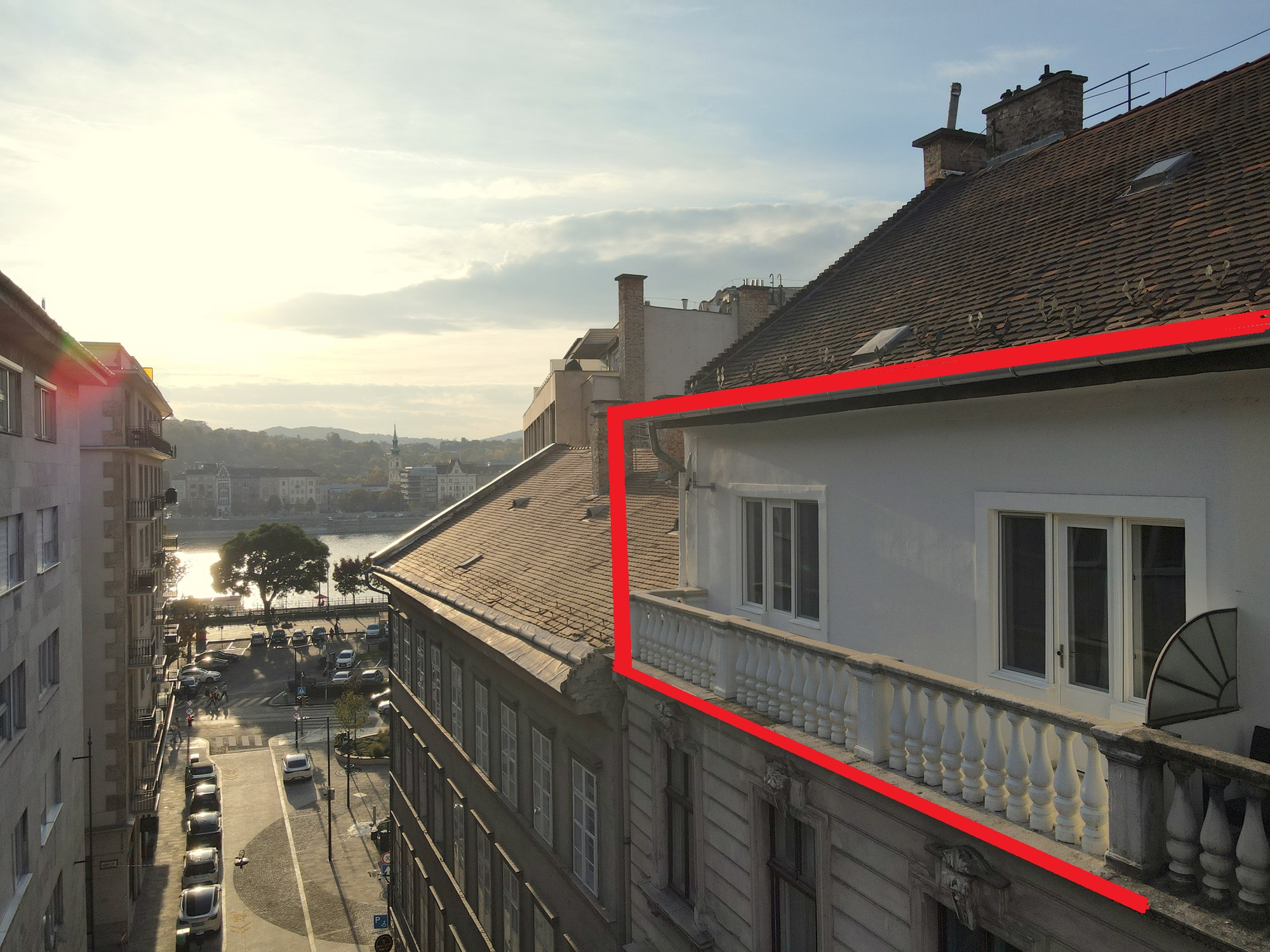 Az belvárosi lakások többségének problémája, hogy a szűk utcák miatt sötétek, azonban ez a lakás a legfelső emeleti elhelyezkedésének köszönhetően egész nap fényjátékban fürdőzik. A 10 négyzetméteres terasz a valóságban tágasabb, reggelizőasztal és székek is elférnek. A nappaliból és a master bedroomból is ki lehet rá jutni, ahonnan tágas perspektíva tárul elénk, a környező épületek megfelelő távolságban vannak és a Duna vizében is gyönyörködhetünk.
