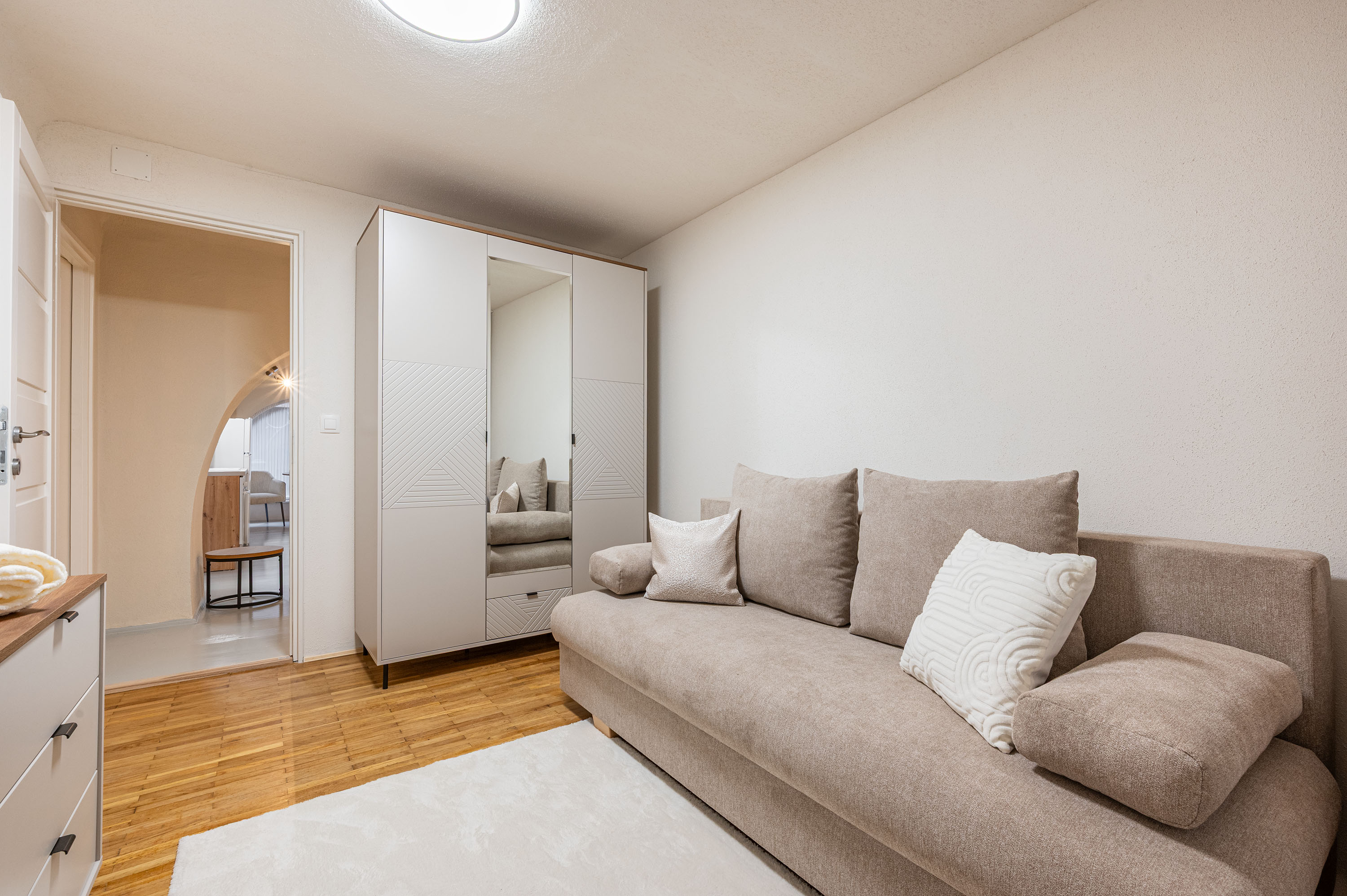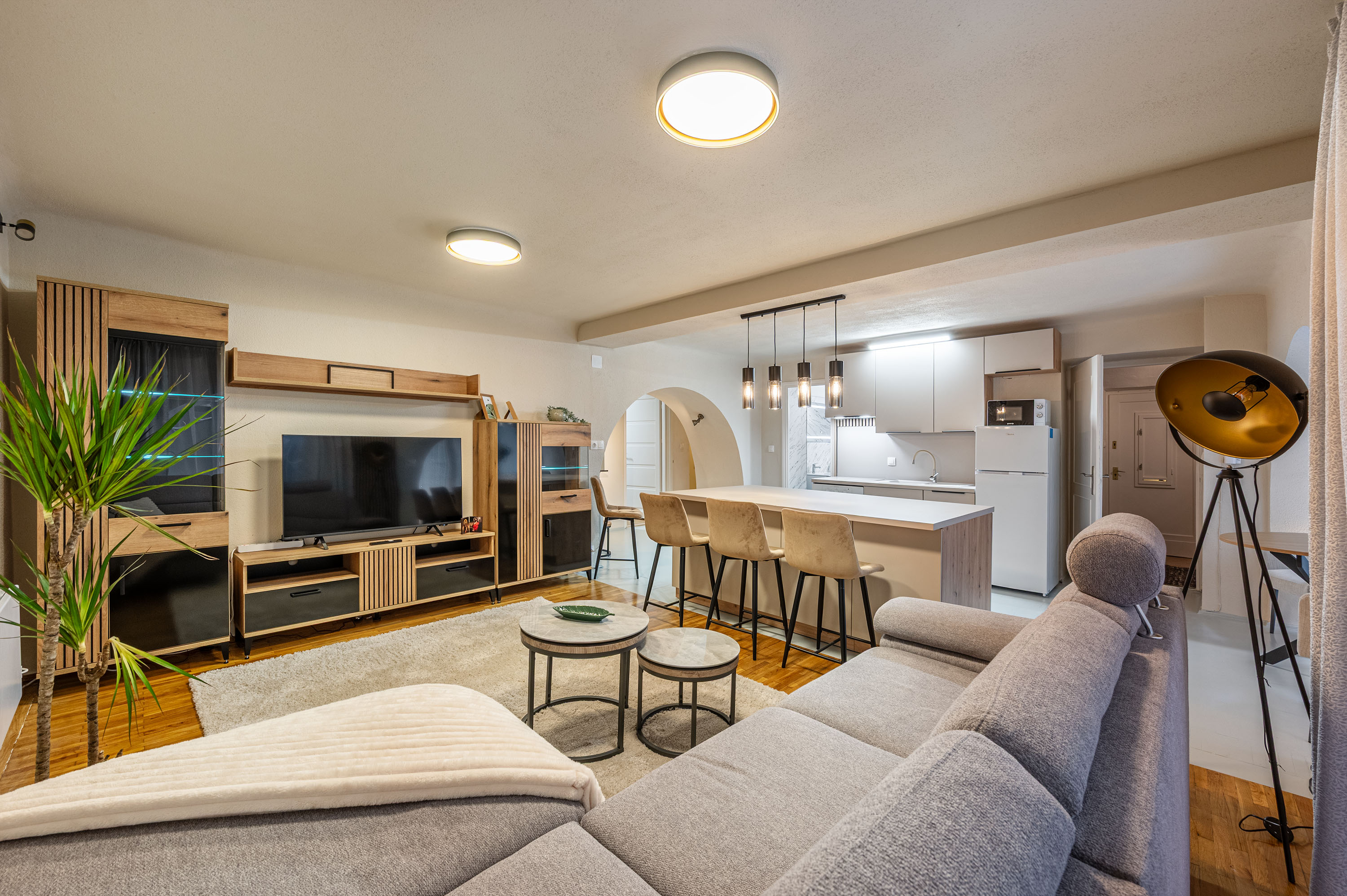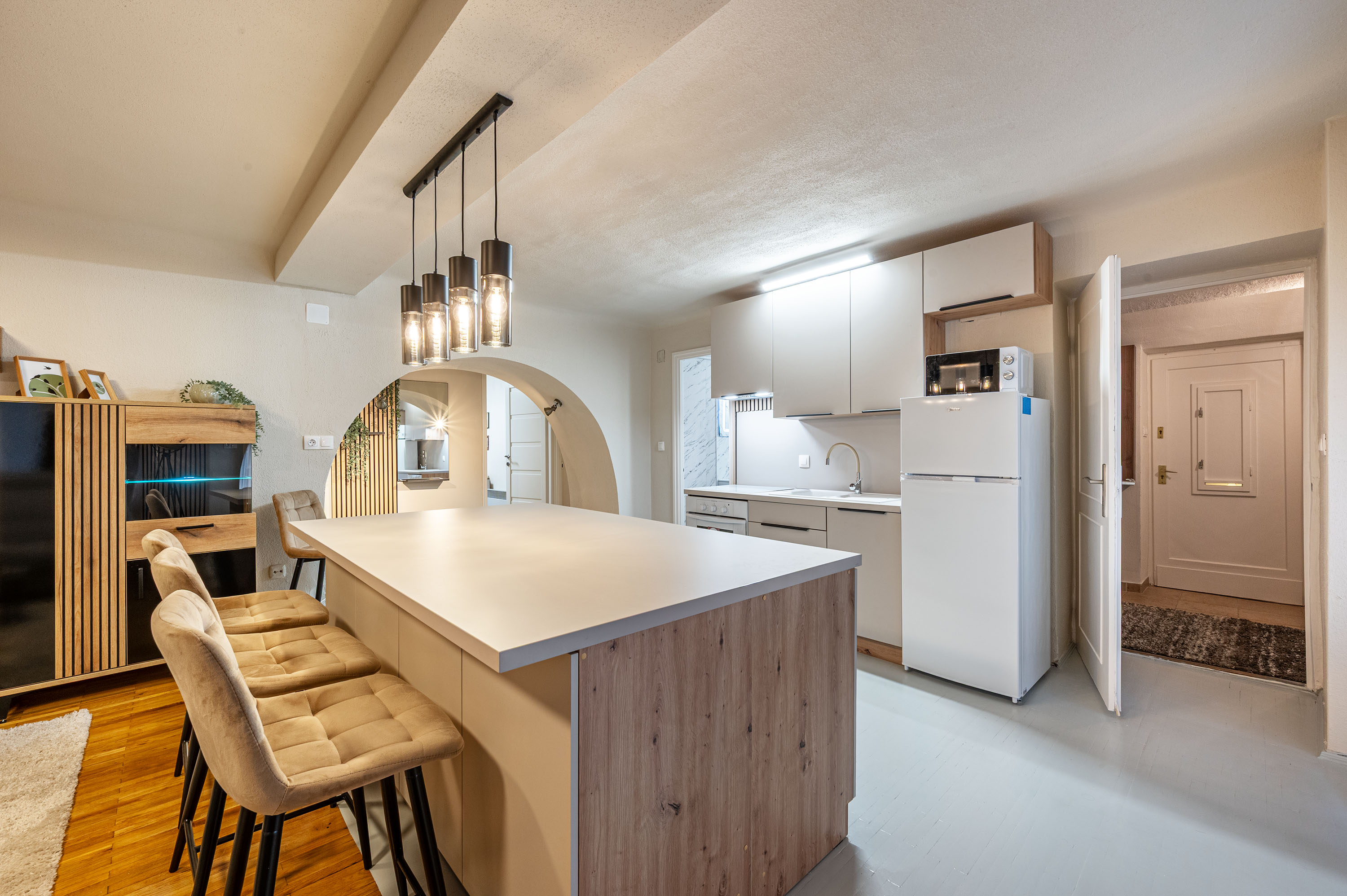 Bár erkély vagy terasz nem tartozik az ingatlanhoz, a kiváló állapotú belső terek, valamint a felújított konyha és fürdőszoba kényelmes, stílusos otthont biztosítanak.