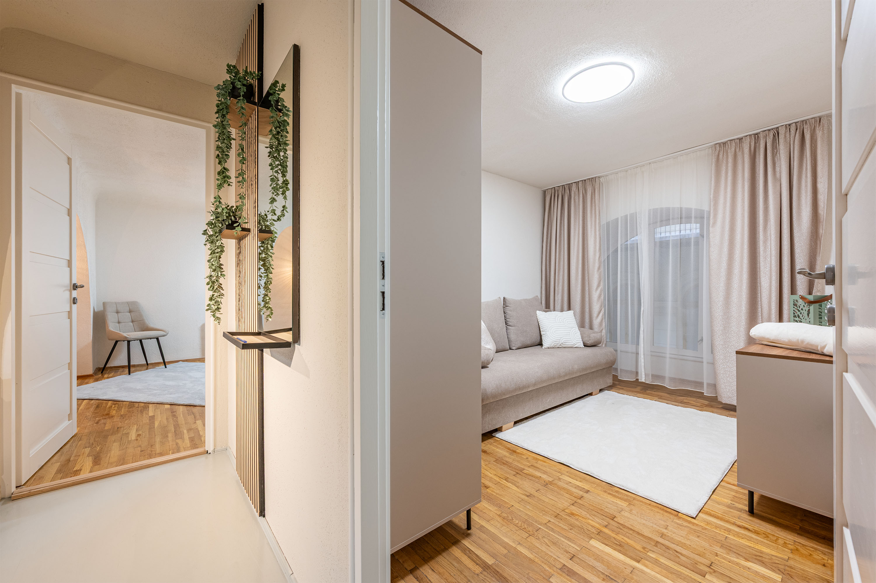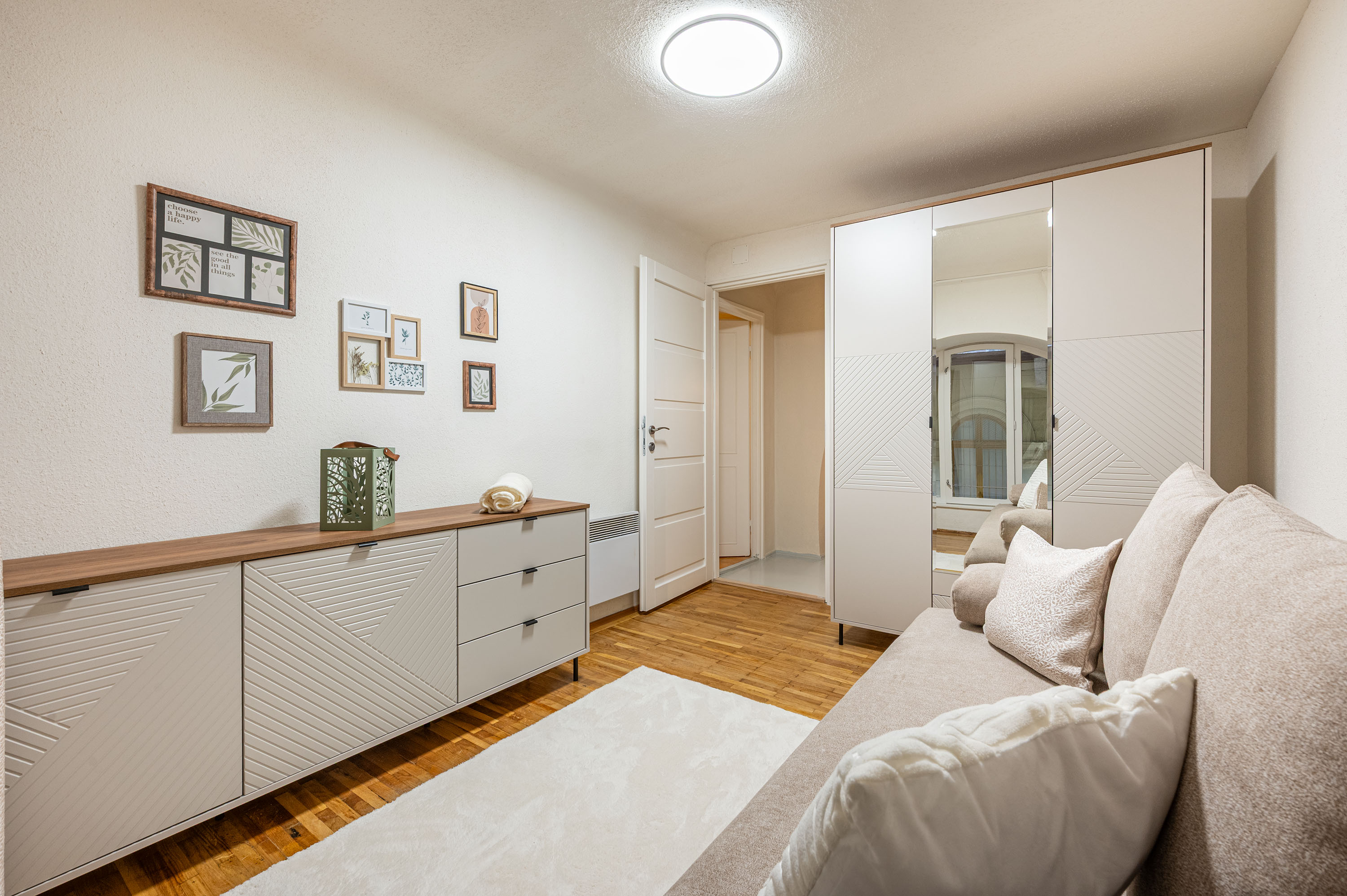 A lakás megőrzi a hagyományos stílust, miközben fokozott komfortérzetet nyújt, parkettás padlózattal és gondosan karbantartott belső terekkel, így azonnal költözhető állapotban várja új lakóit.