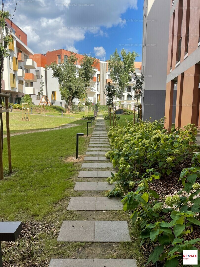 A lakópark zárt udvara csak a lakóké, ahol saját használatú játszótér és park van, a parkolás pedig ingyenes az utcán.