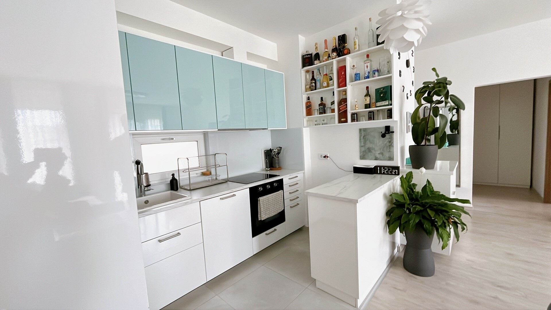 A prémium minőségi konyhabútor gépesített, hűtő, mélyhűtő, mikró, kerámialapos főzőlap, sütő, mosogatógép és szagelszívó került beépítésre.