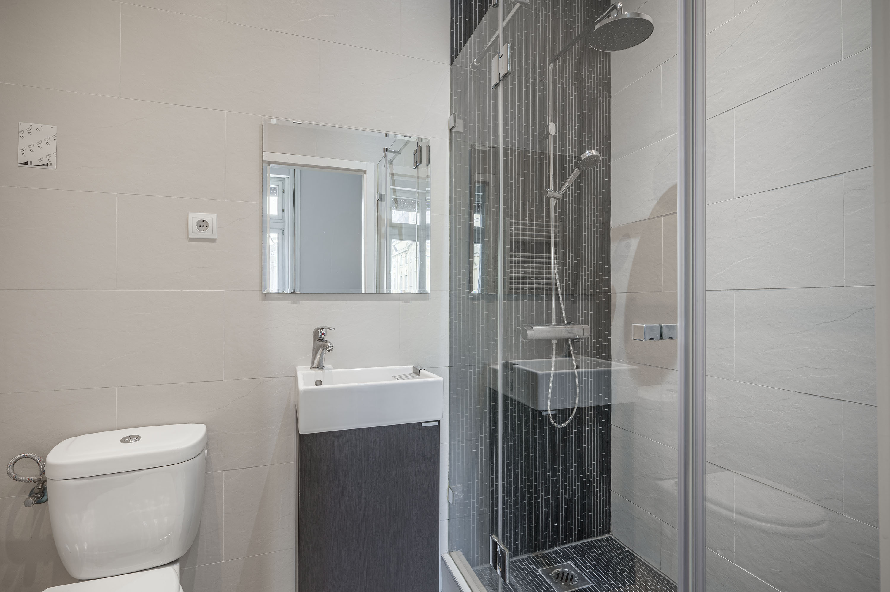 A liftből kilépve a lakás zárt közös közlekedőkből közelíthető meg, mely növeli a biztonság és magánszféra érzetét. A bejárati ajtón belépve a tágas ebédlős konyhába jutunk, ahol jobb kéz felé nyílik egy háztartási helyiség vagy akár gardróbként is használható szoba. Tovább haladva jobbra található az erkélyes, napfényes, utcai kilátású nappali. A hálószoba a nappaliból és a konyhából nyíló folyosóról is megközelíthető. Az ingatlannak két hálószobája van, az egyikhez külön fürdőszoba is tartozik. A kis háló mérete félszobának minősül. A nagy méretű fürdőszobában kád és zuhanyzó egyaránt megtalálható.