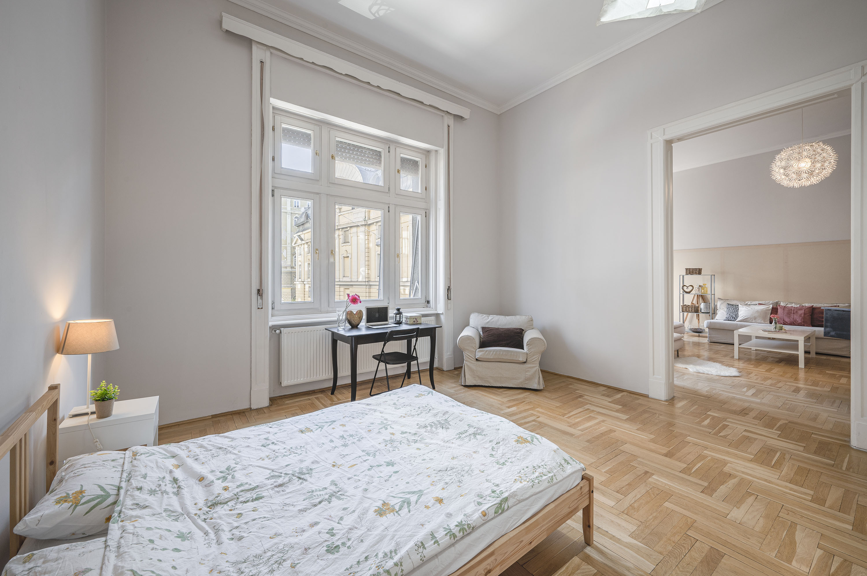 Kiadó erkélyes, napfényes, nagypolgári kuriózum a Pannónia utcában. A bérleti díj 1290EUR, mely tartalmazza a lakás havi egyszeri takarítását is.