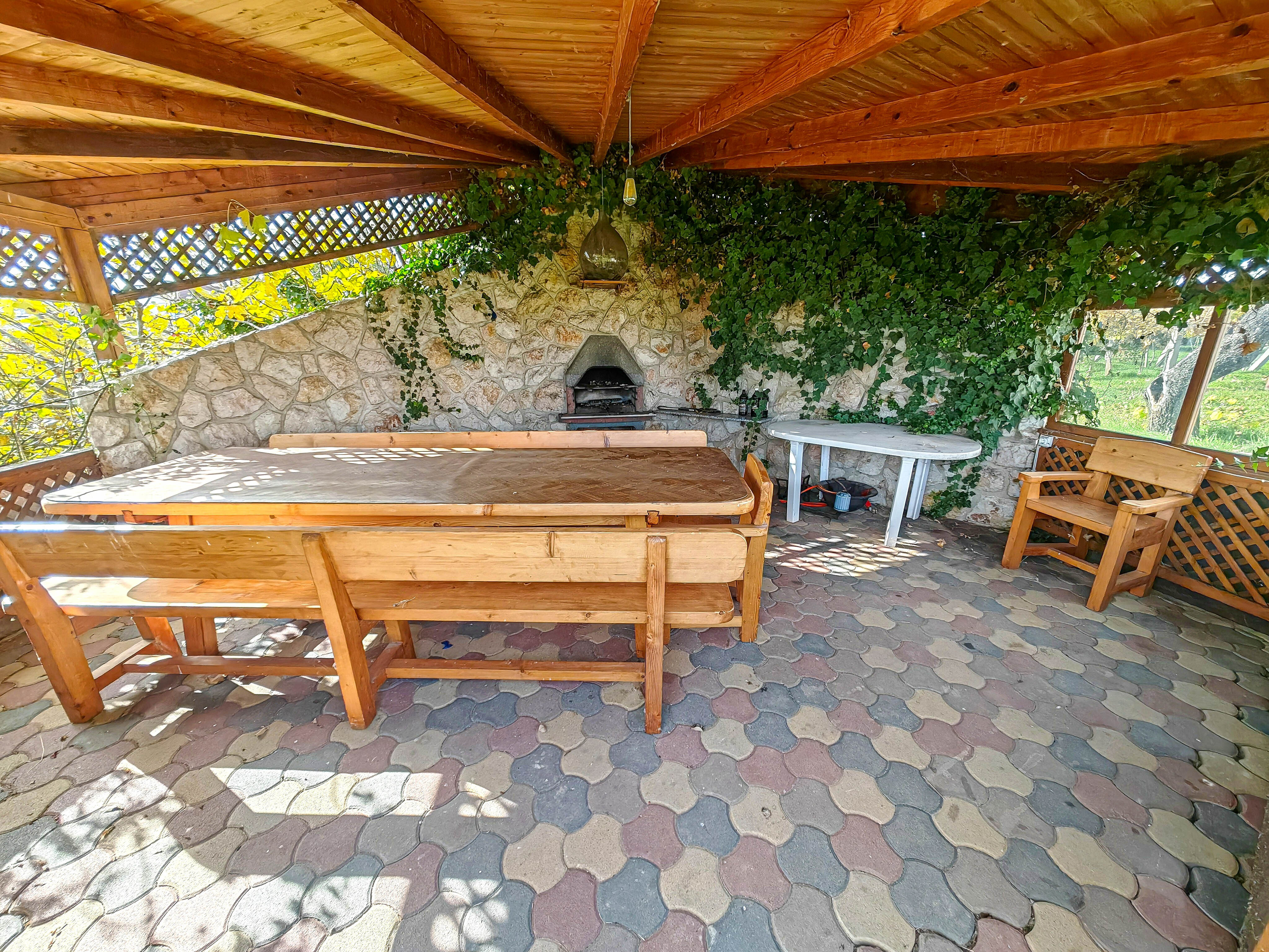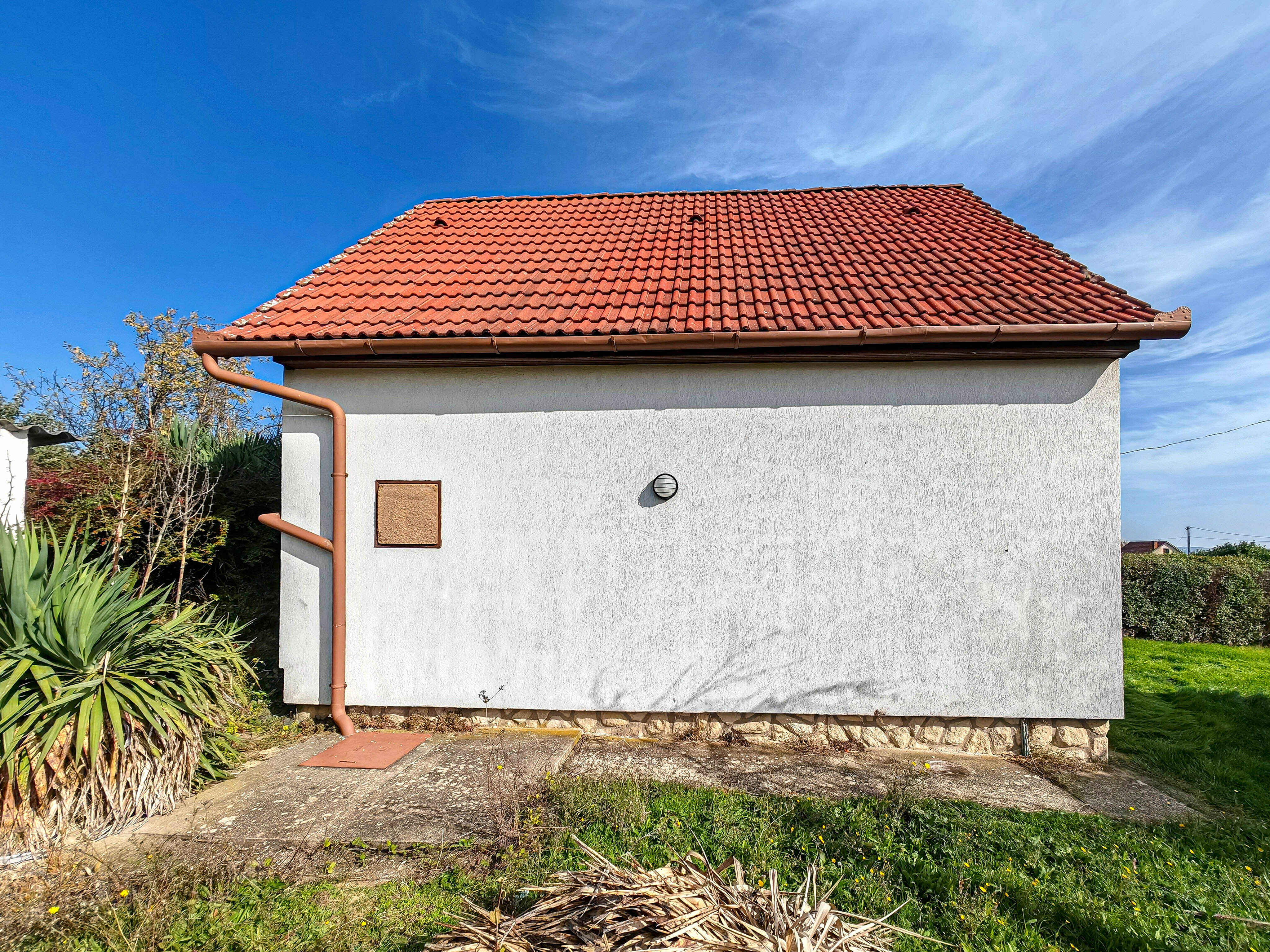 A házhoz tágas 3358 m²-es telek tartozik, amin gondozott kert, nyitott parkoló, pince, valamint egy fedett pihenőhely is megtalálható. A konyha beépített, a fürdő és a mellékhelyiség külön helyiségben található.