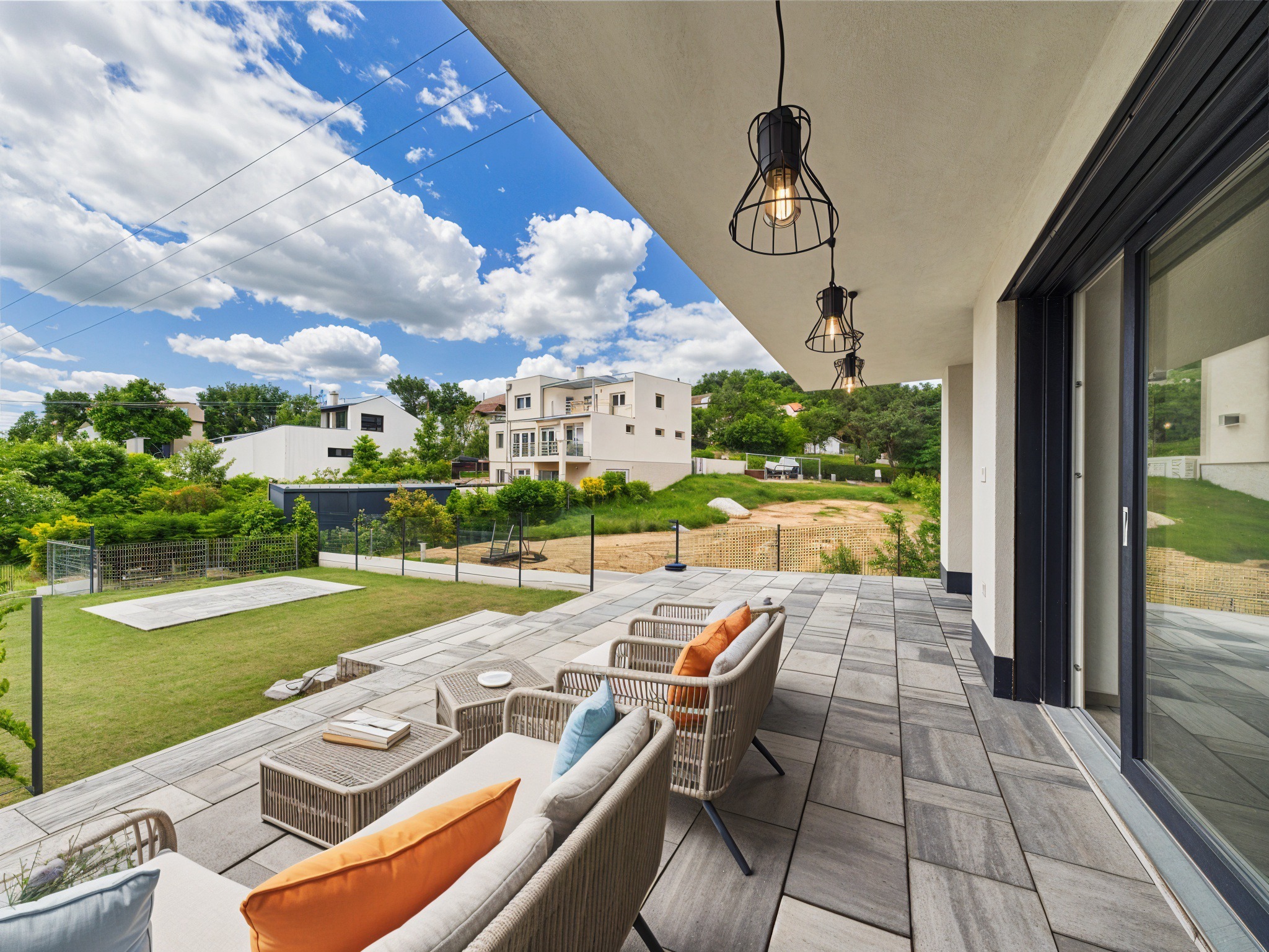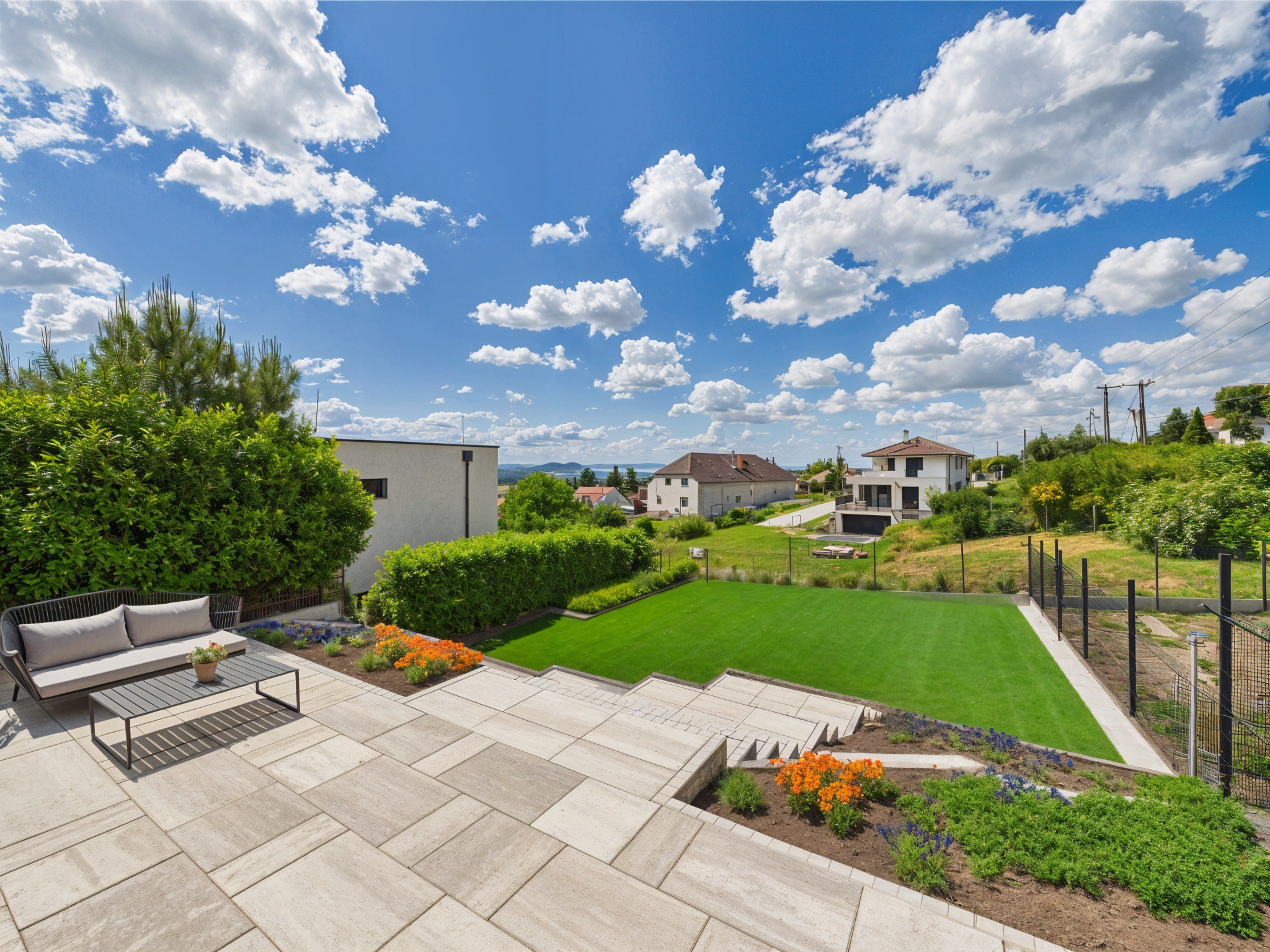 - nagy méretű terasz közvetlen kertkapcsolattal