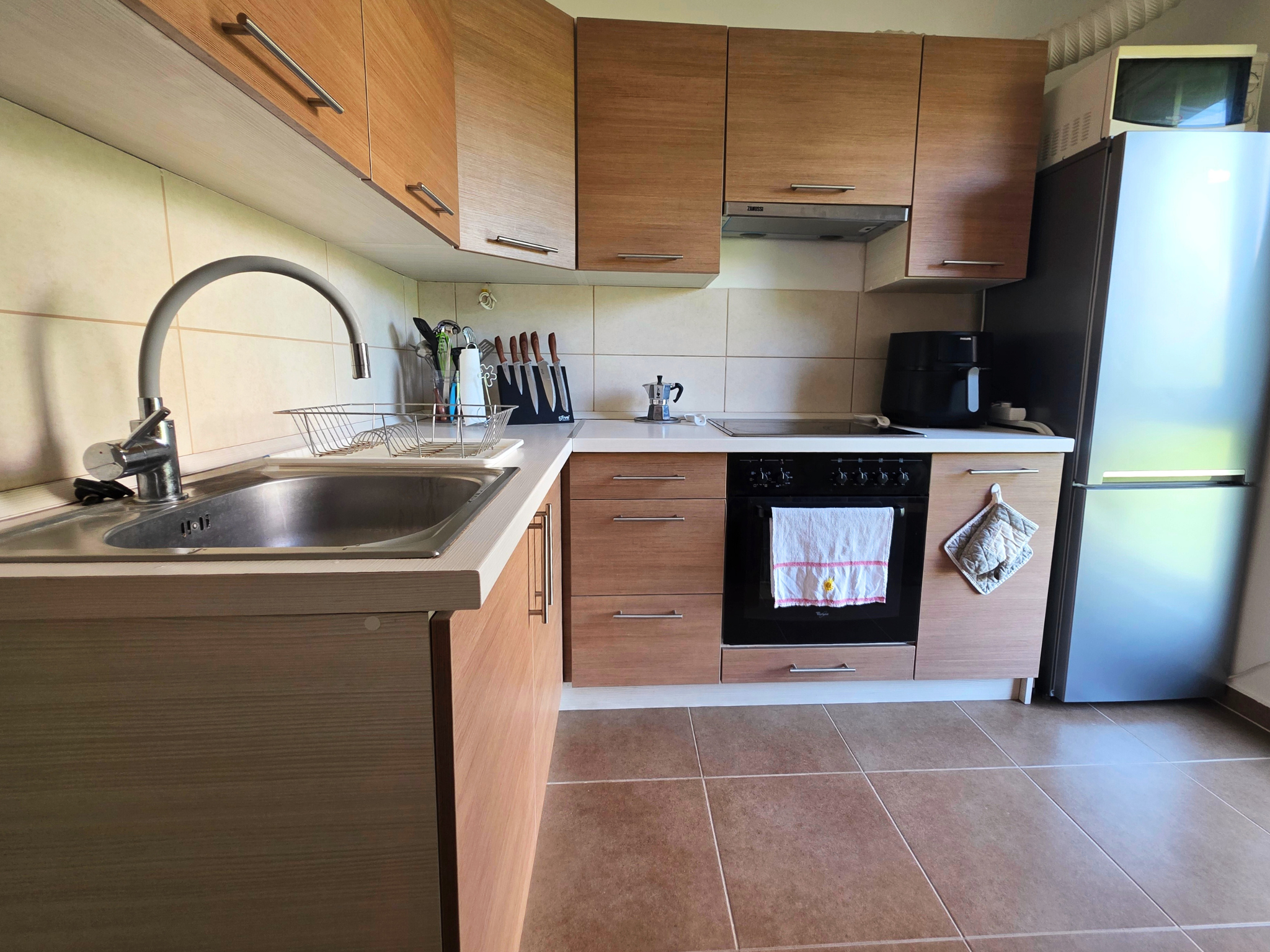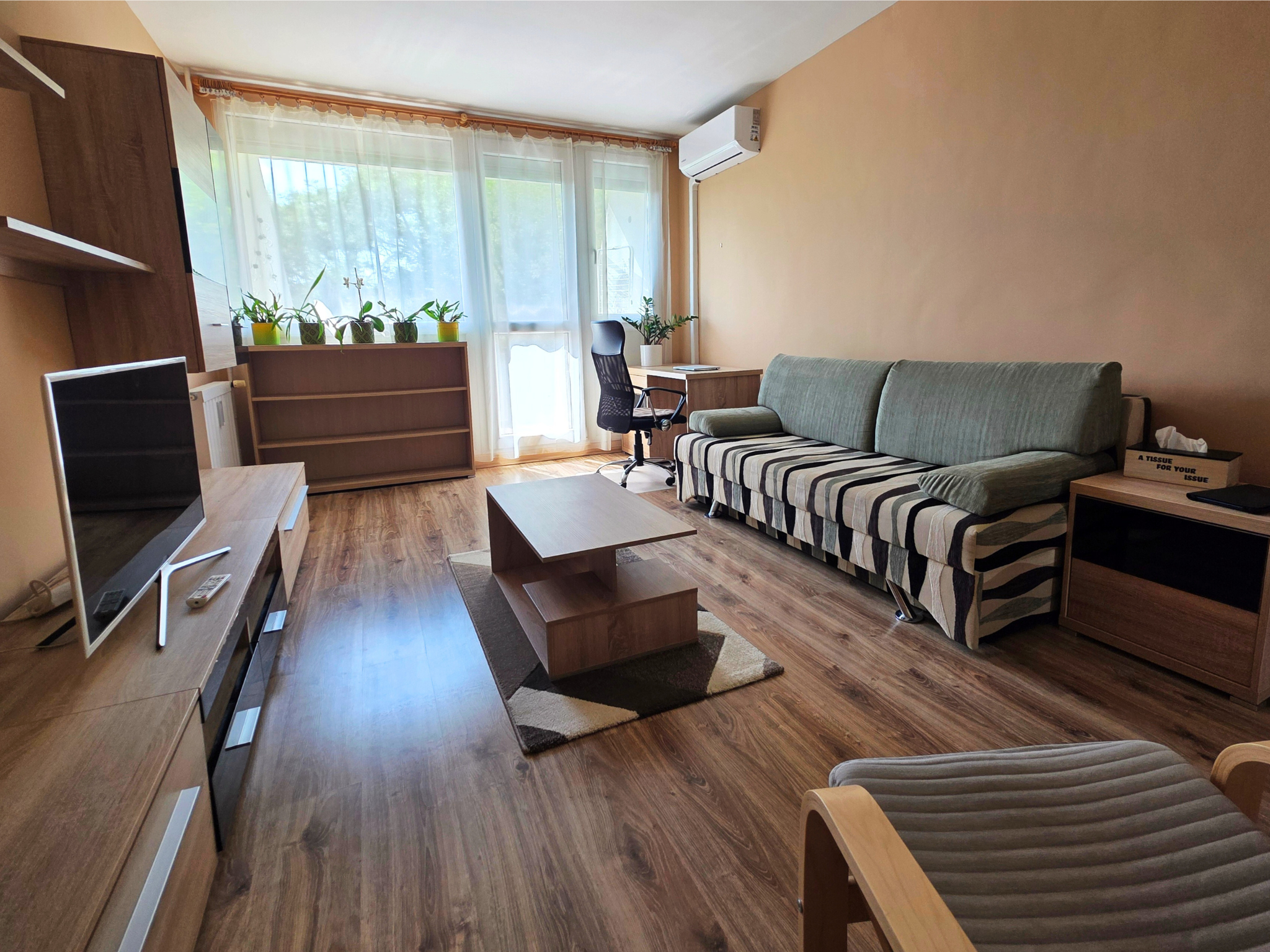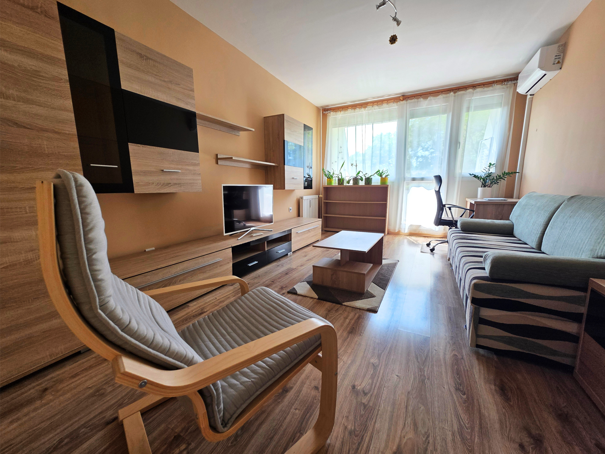 A lakás teljesen bútorozott, beépített konyhával, klímával, erkéllyel és távfűtéssel rendelkezik, így azonnal költözhető és modern életvitelt biztosít.