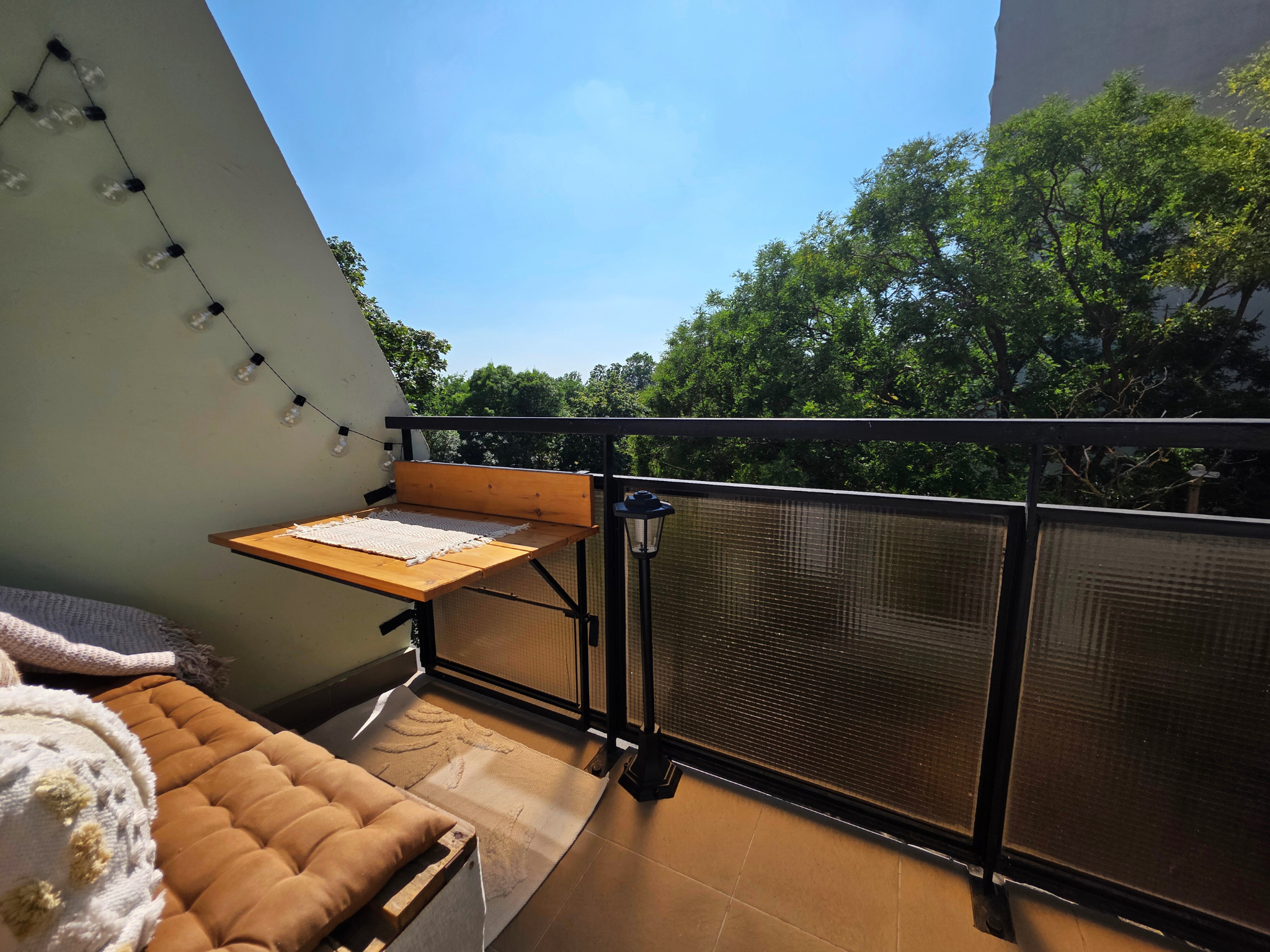 Az erkéllyel rendelkező lakás zöld területekre néz, ahol kellemesen pihenhet. A belső tér kitűnő állapotú, stílusos padlóval, friss felújítással és modern bútorzattal. A klímaberendezés egész évben biztosítja a megfelelő hőmérsékletet.
