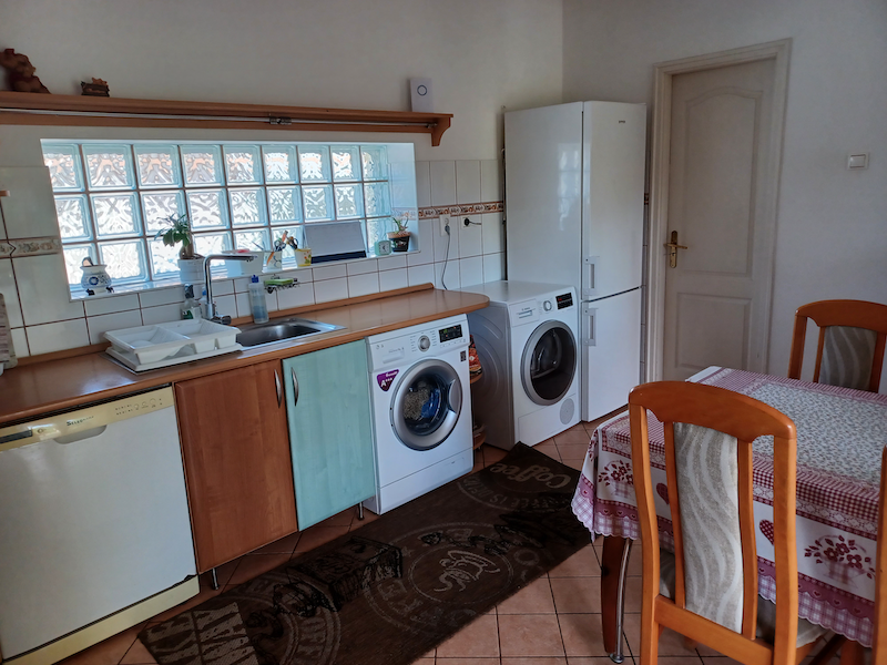 A fűtés gáz-cirkó és egy fél éve vásárolt vegyes tüzelésű kazán kombinációjával működik, a meleg vizet gázkazán biztosítja. A műanyag nyílászárók szúnyoghálóval ellátottak, a biztonságról pedig riasztórendszer és kamerahálózat gondoskodik.