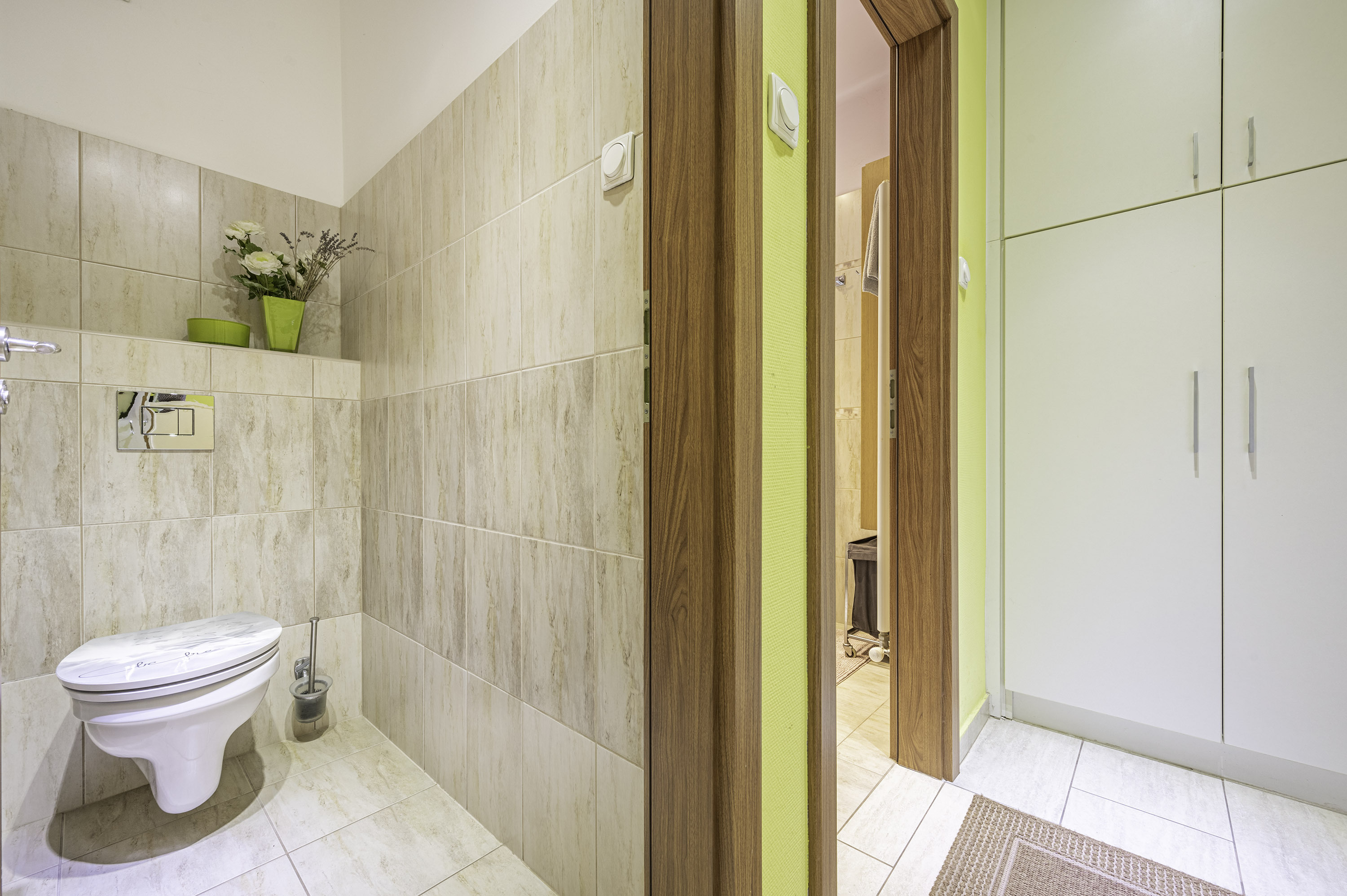 Közvetlenül a közlekedőből egy pár éve felújított fürdőt találunk zuhanyzóval és külön helyiségben egy wc-vel.