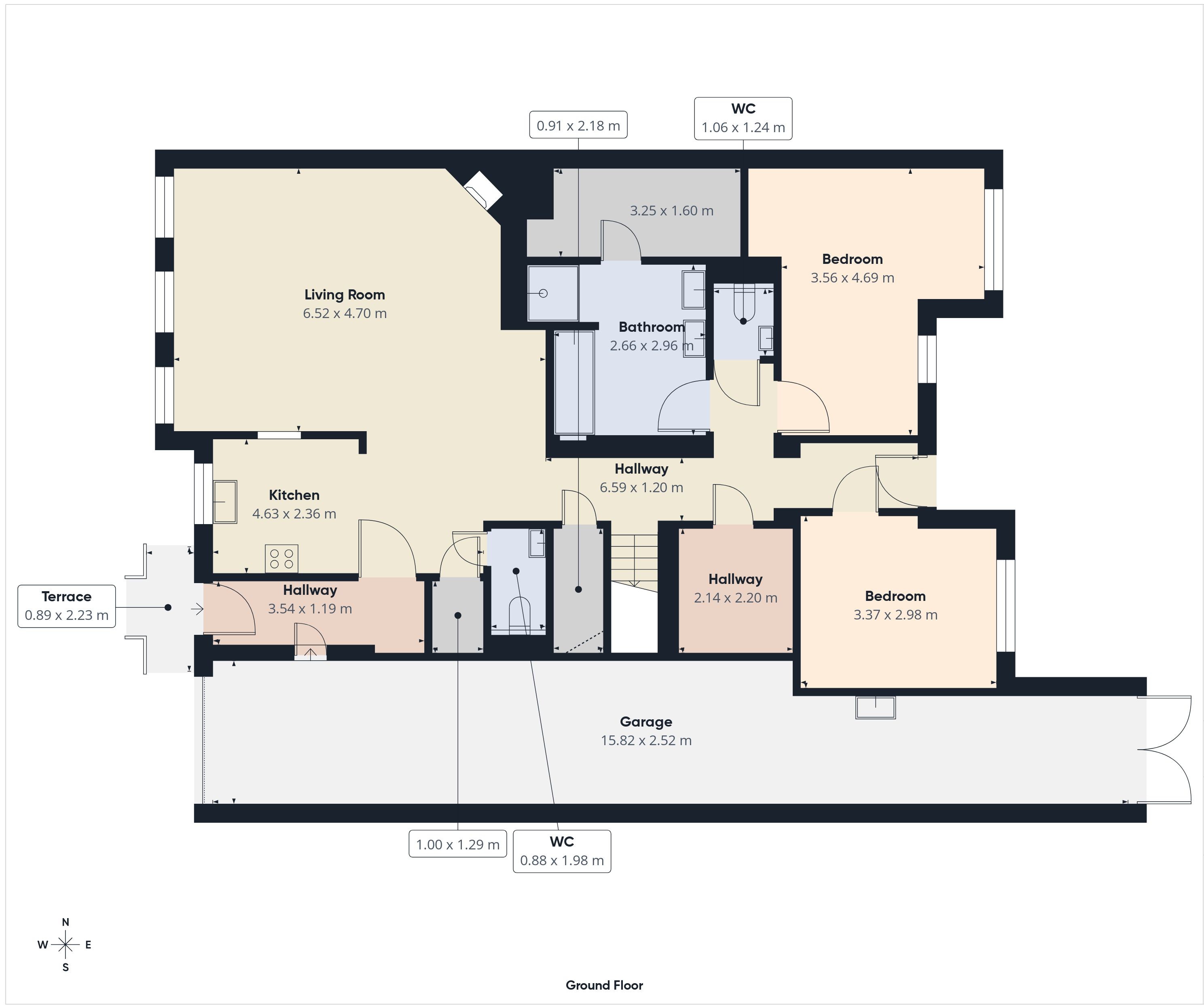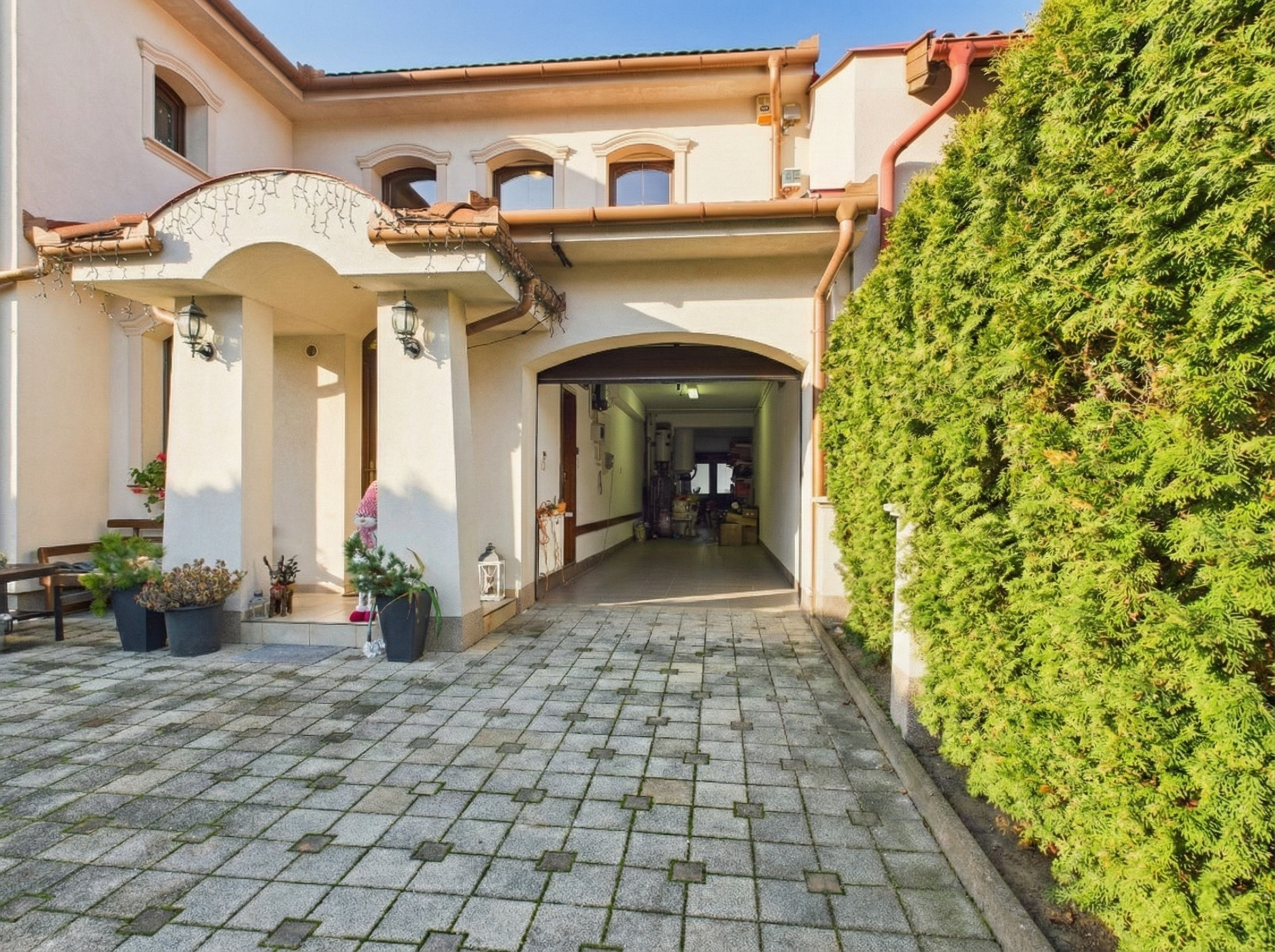 A 32 m²-es dupla garázs kényelmes parkolást biztosít, valamint közvetlen átjárást a hátsó kertbe, ami praktikus és biztonságos megoldás.