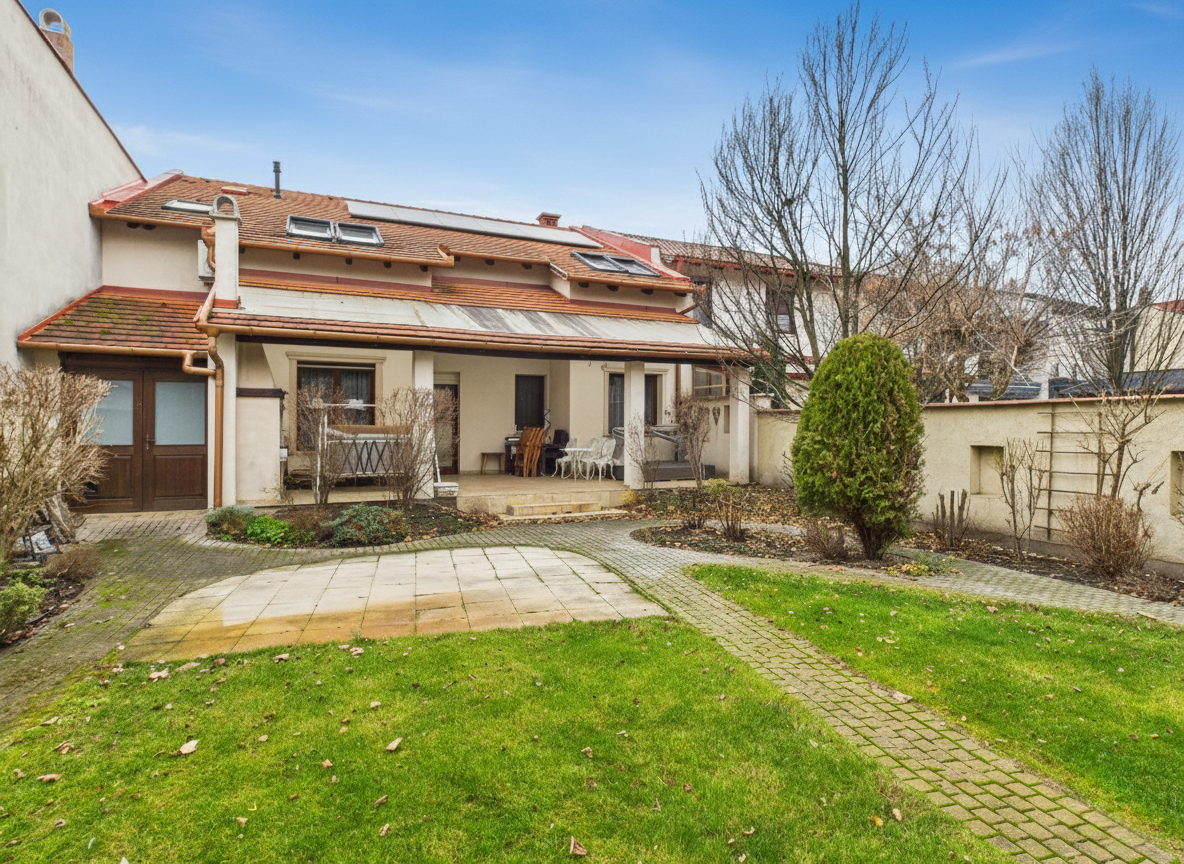 Az ingatlan 430 m²-es telken helyezkedik el, gondozott elő- és hátsó kerttel. A belső terek jól átgondolt elrendezésűek: nappali–étkező–konyha egy légtérben, összesen 5 külön nyíló szobával, két fürdőszobával és két WC-vel. A háztartást gardrób, mosókonyha, gépészeti helyiség és több tároló is segíti.