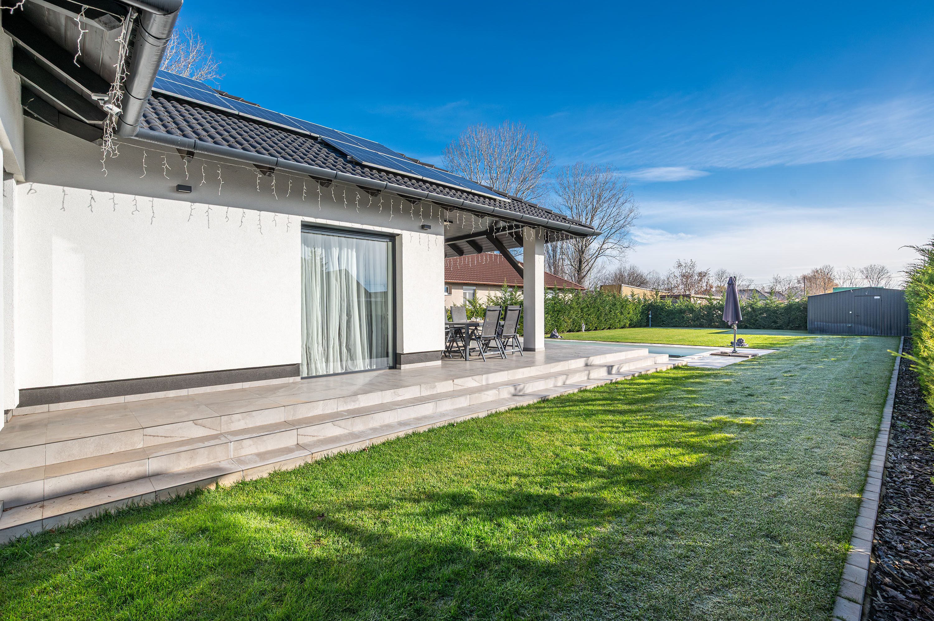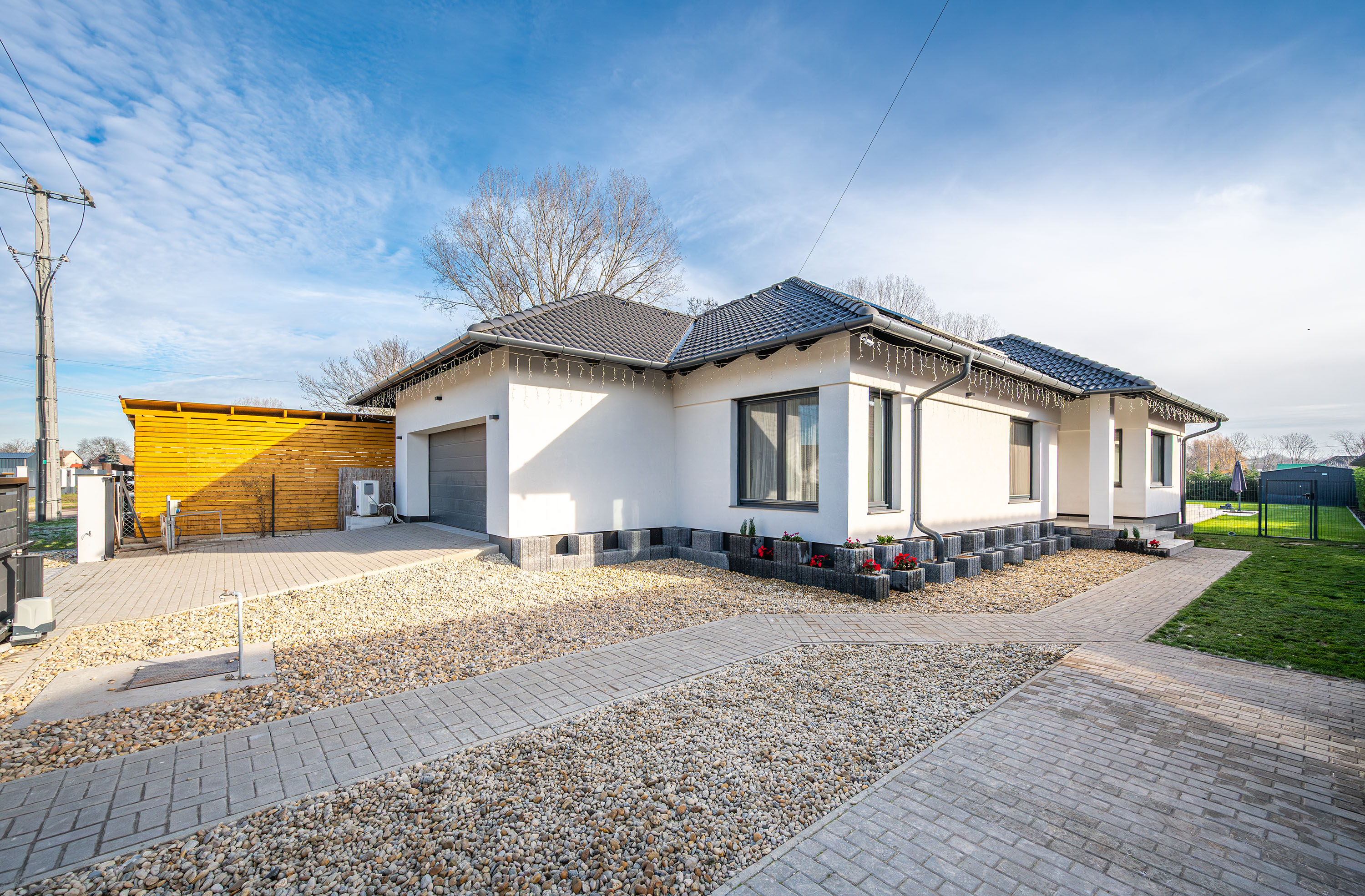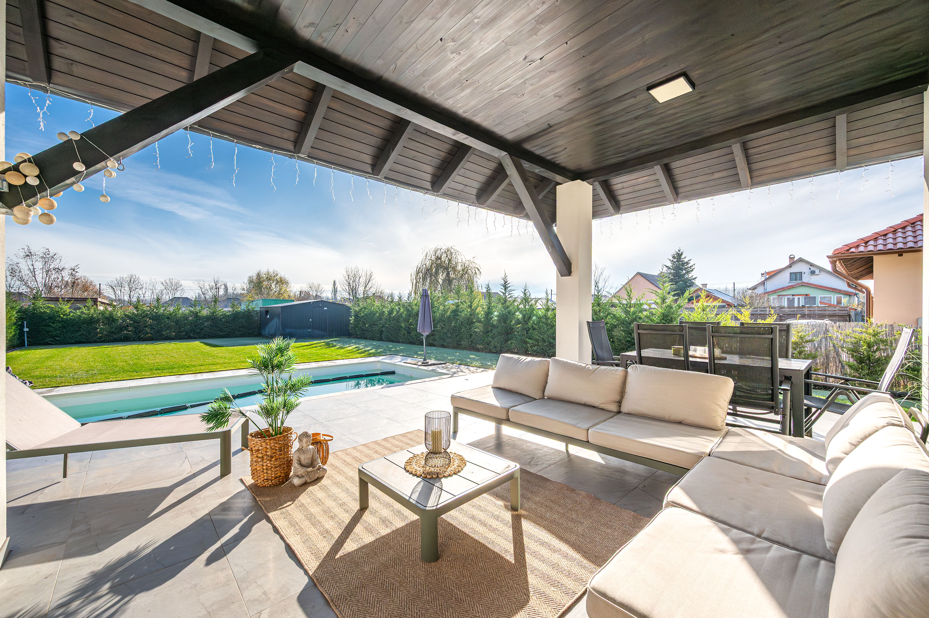 Ha olyan otthont keresel, ahol az év nagy részében a saját medencédben csobbanhatsz és kompromisszumok nélkül élvezheted a modern technológia és kényelem minden előnyét – akkor ez a 2023-ban műszakilag átadott, bruttó 261 m²-es, napelemekkel ellátott medencés családi ház Nektek épült!