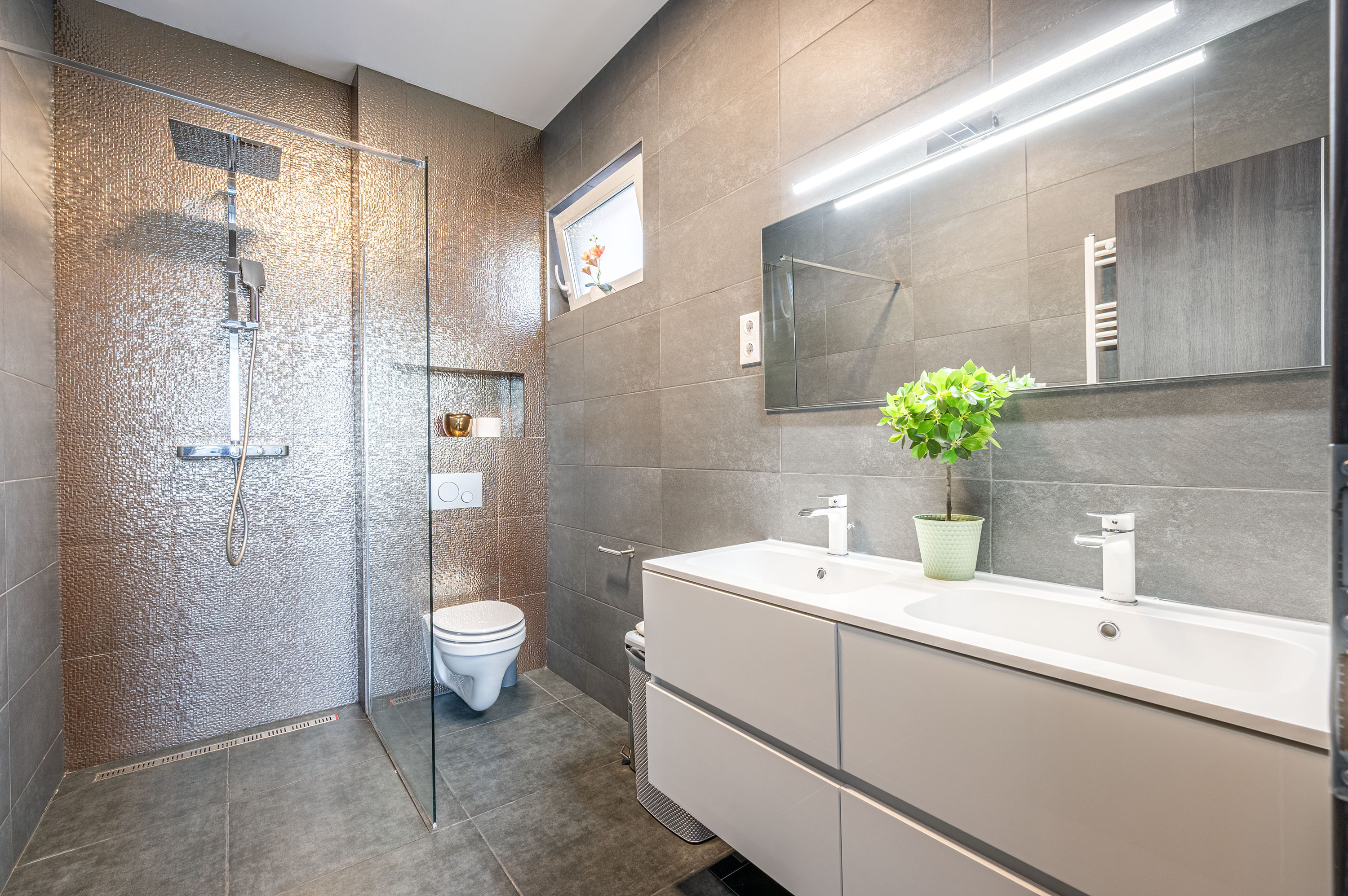 o Kényelmes második fürdőszoba: kád + dupla mosdó + WC