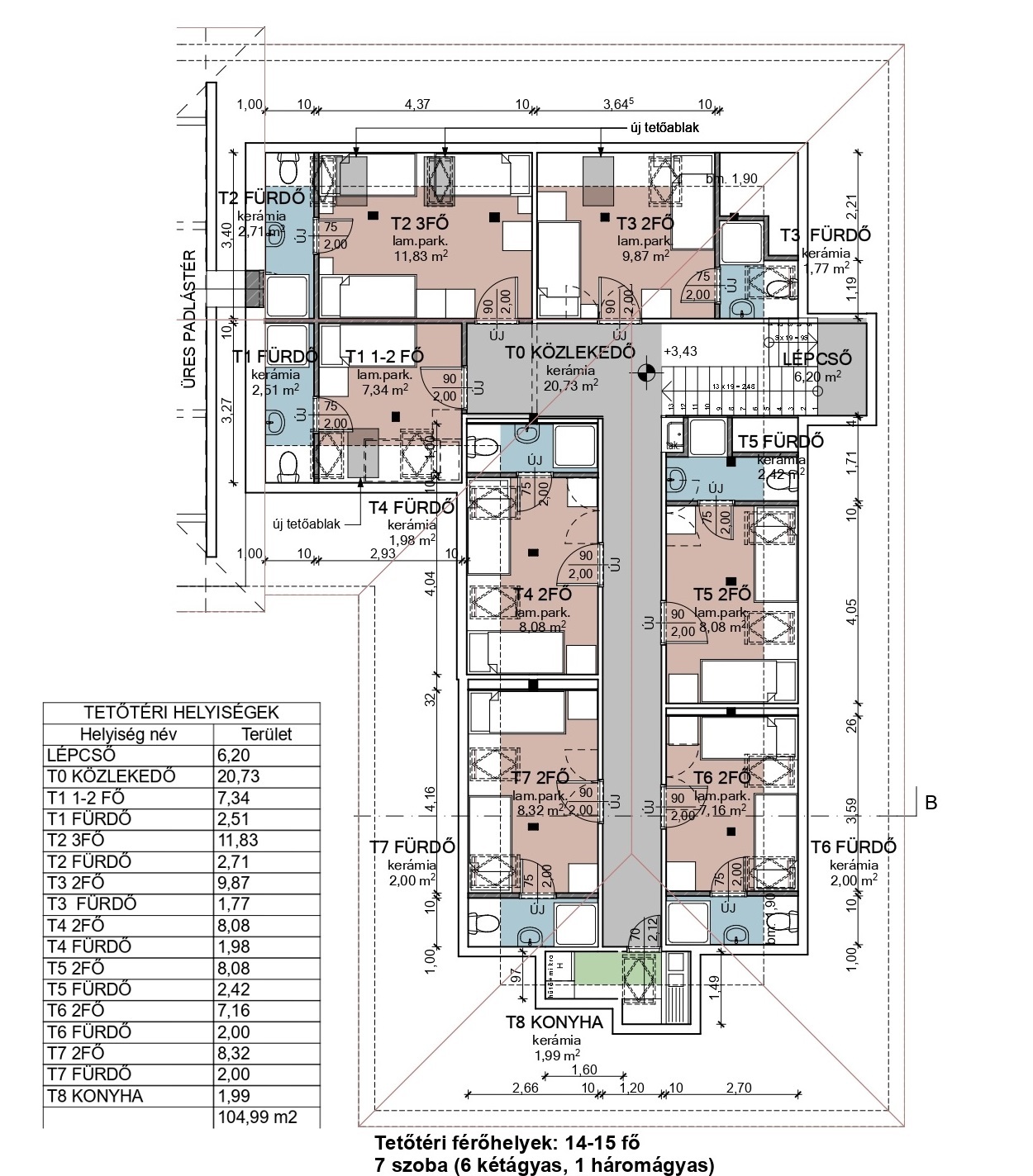 - Emelet: nettó 105 nm, 7 fürdőszobás lakóegység, mosókonyha