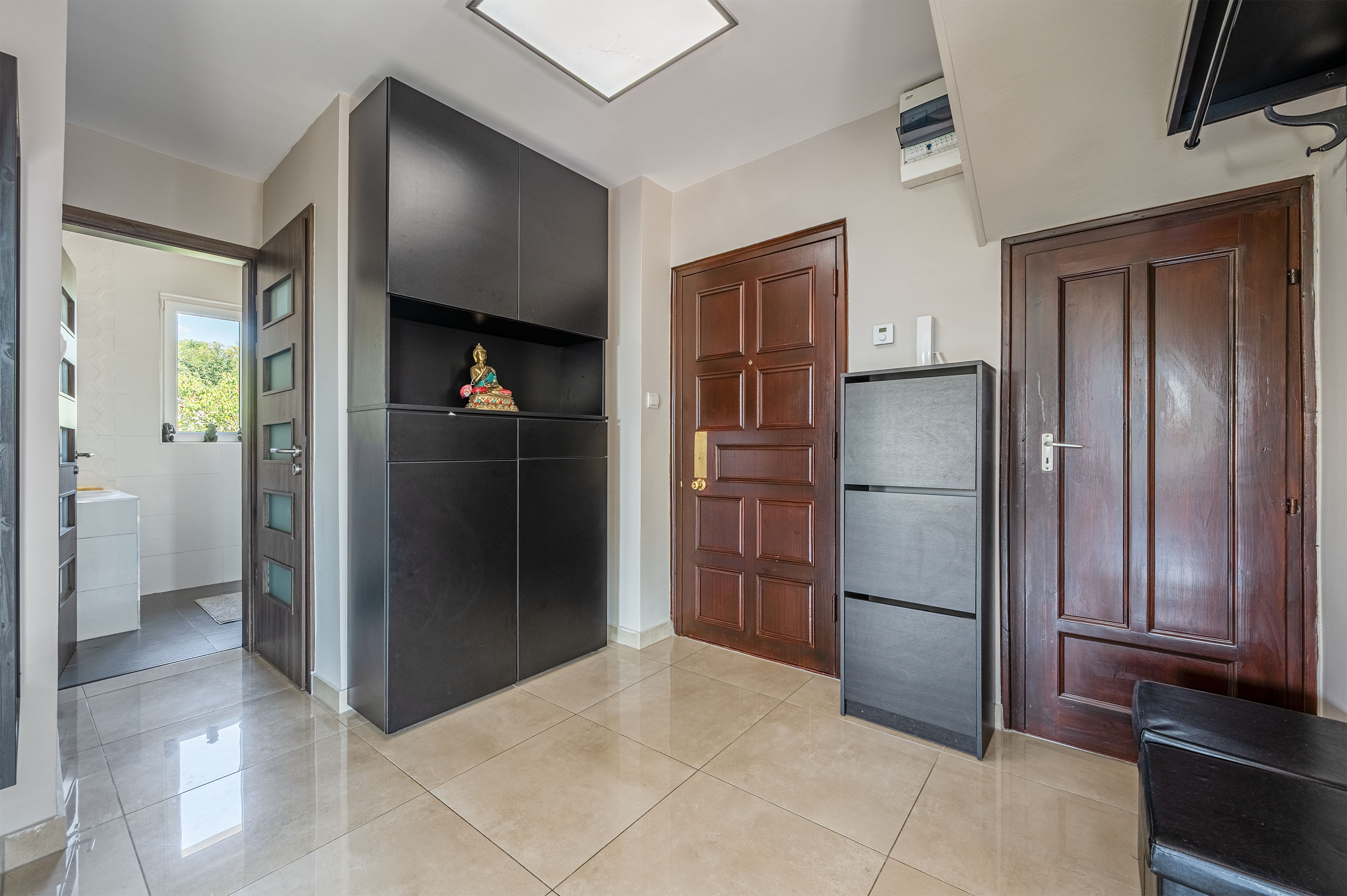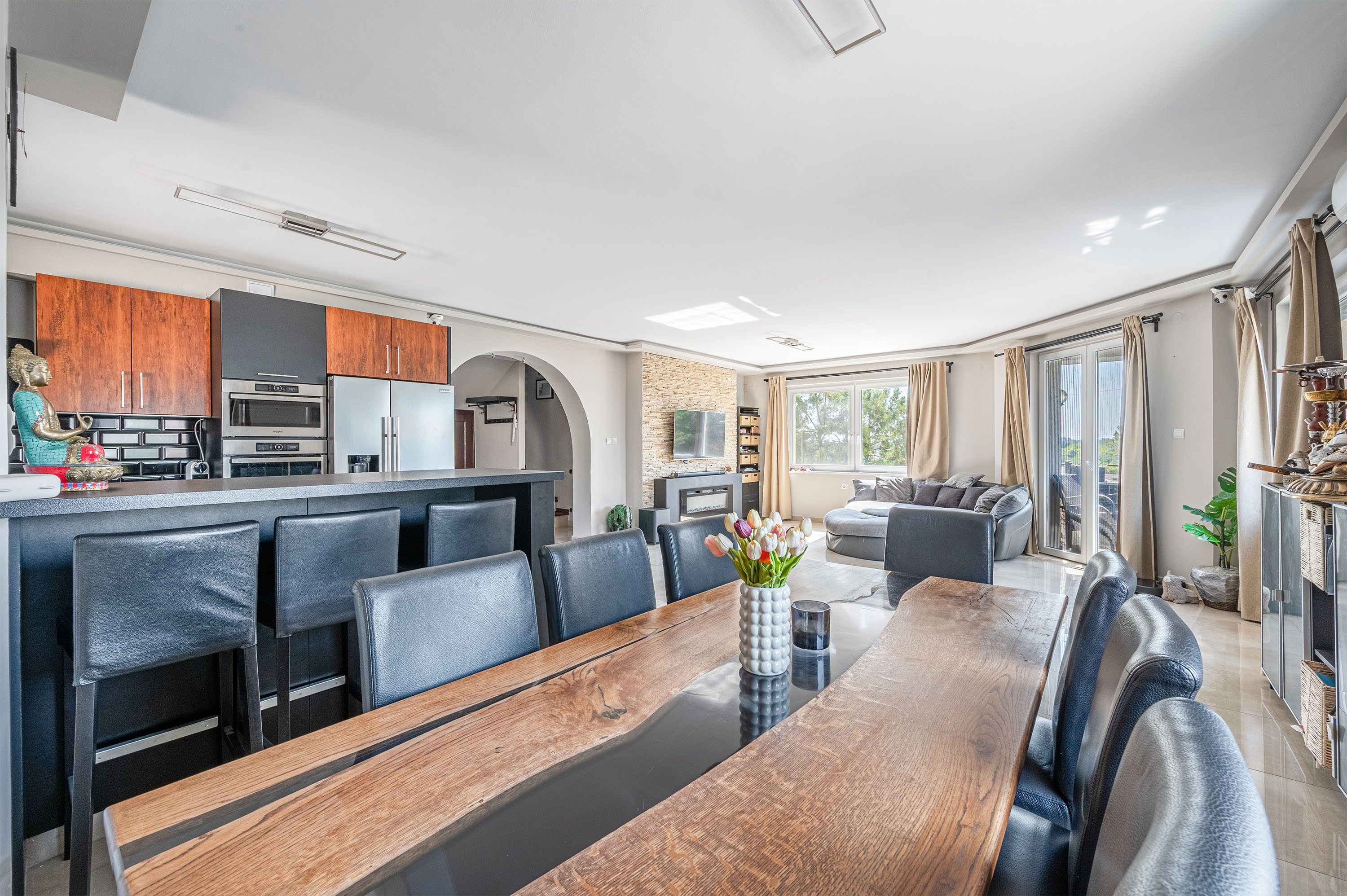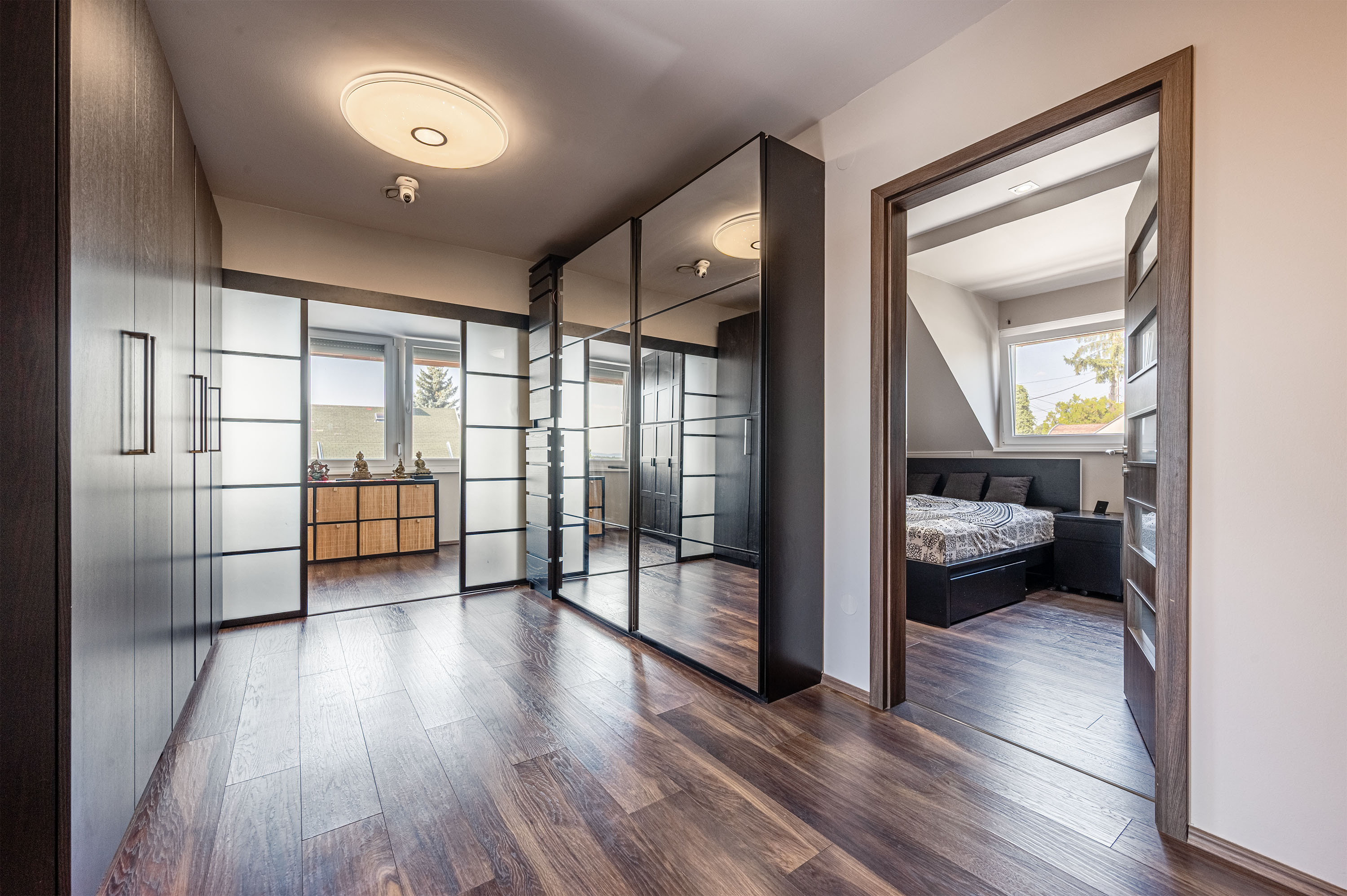 A lakás alsó szintjén egy tágas előszoba, egy amerikai konyhás nappali, erkély, egy hálószoba, külön WC és fürdőszoba, valamint egy kamra található, míg a felső szinten négy hálószoba, egy fürdőszoba, külön WC, háztartási helyiség és egy hangulatos "home office" kapott helyet.