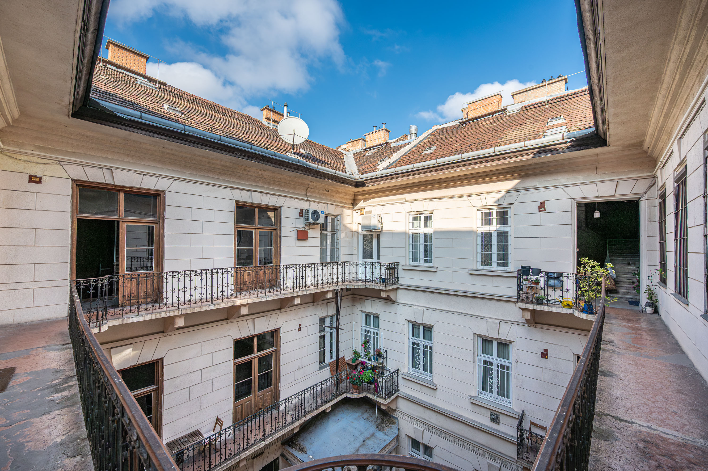 A lakásnak otthont adó társasház 1881-ben épült Jahn József építőmester tervei alapján ,historizáló stílusban. A 25 lakásos, liftes téglaépítésű társasház harmadik emeletén található ez a 99 m²-es, jó állapotú, napfényes lakás. A klasszikus polgári jegyek azonnal magukkal ragadják: impozáns, 3,8 méteres belmagasság, tágas terek és elegáns hangulat. A lakás két külön bejáratú hálószobából és amerikai konyhás nappaliból áll. Ezen felül hall, gardróbszoba és kényelmes méretű fürdőszoba is szolgálja a mindennapi kényelmet. Délkeleti tájolása révén a nappaliból gyönyörű rálátás nyílik az Andrássy útra, míg a napos, udvari hálószoba csendet és nyugalmat biztosít.