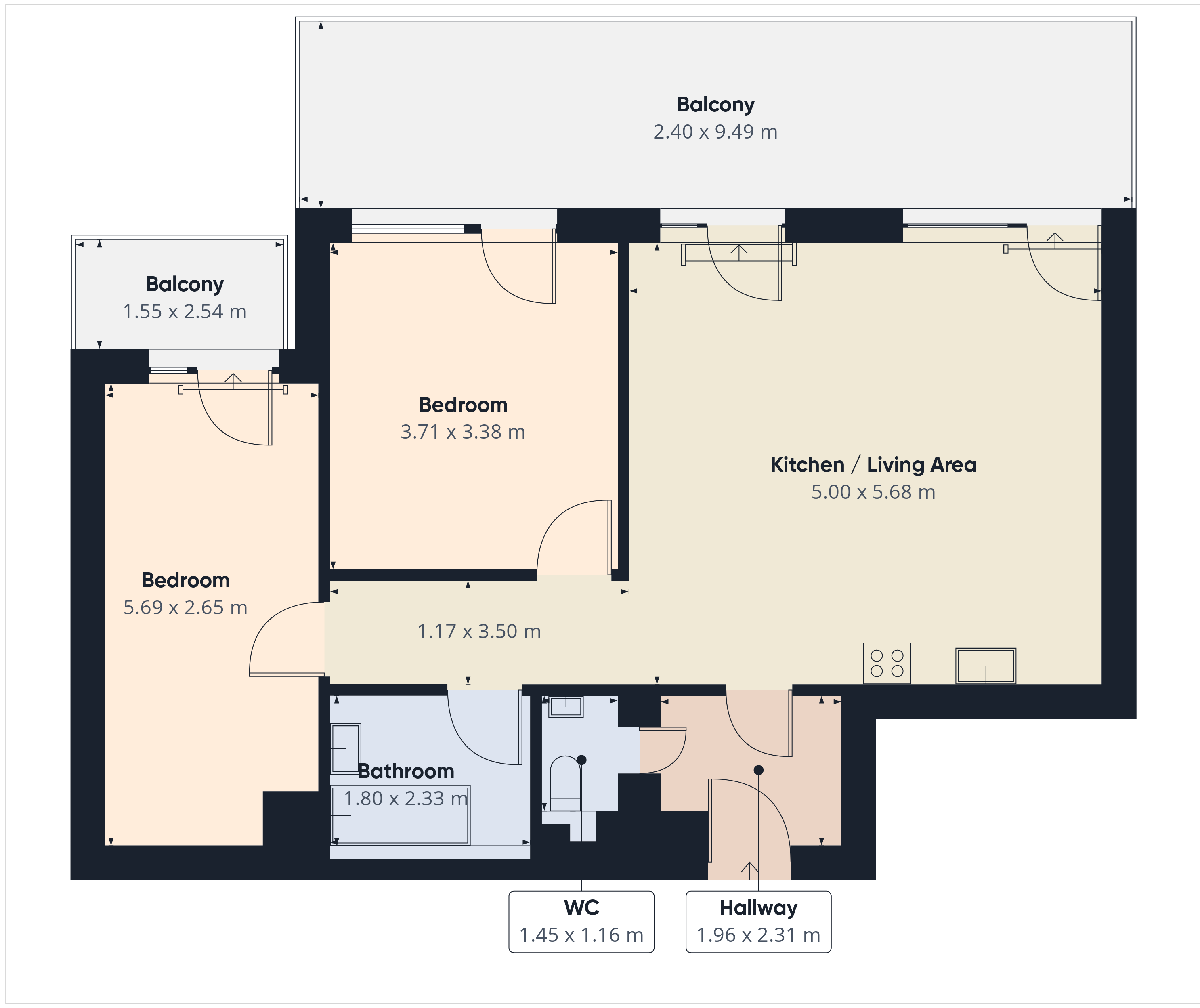 Az ingatlan kifinomult és praktikus, nappali plusz két hálószobával, valamint hatalmas, 29 négyzetméteres panorámás erkéllyel rendelkezik, ahol a napfény minden pillanatát élvezheti. A lakás összes helyisége tágas és világos, nagy üvegportálokkal.