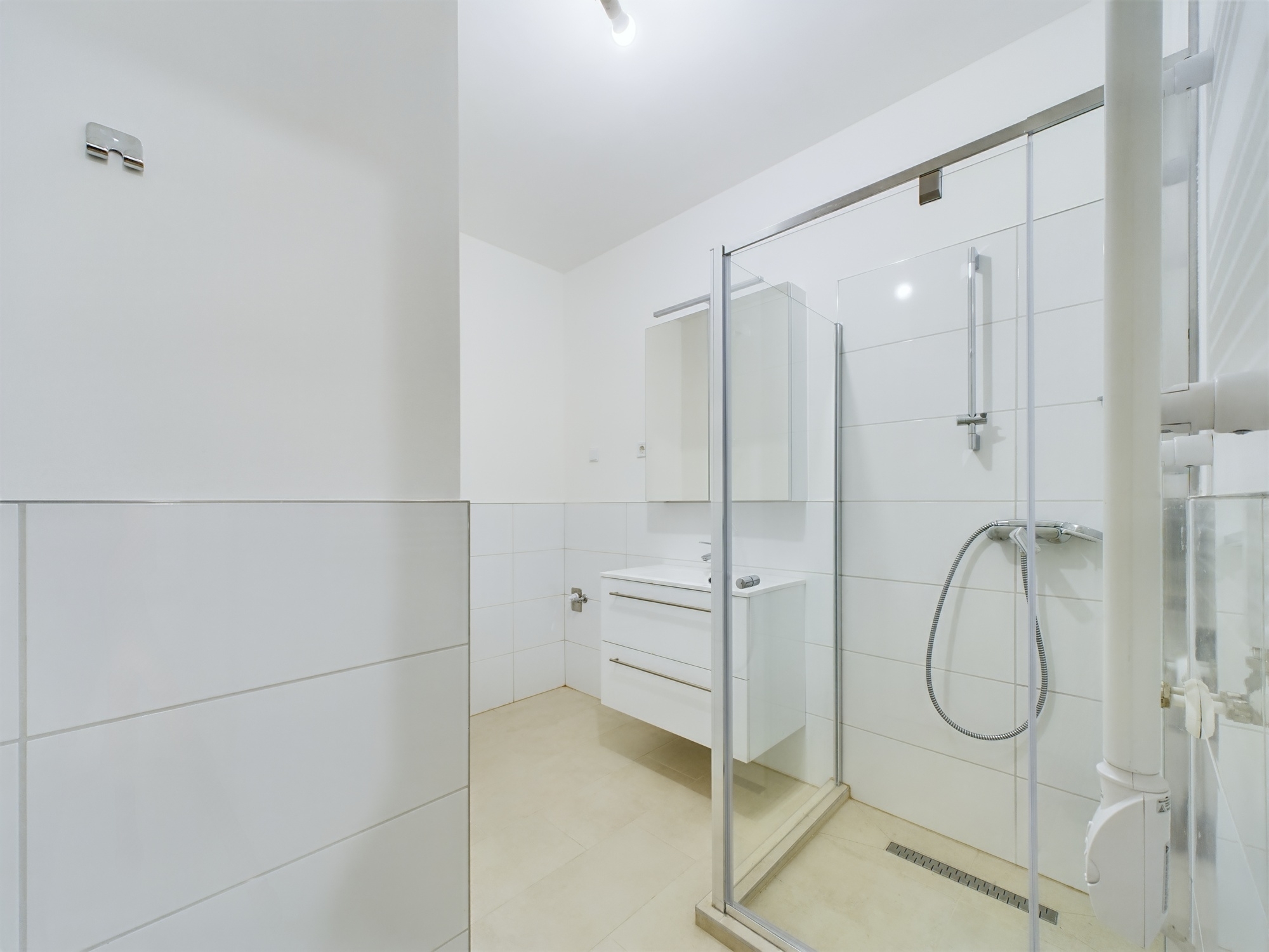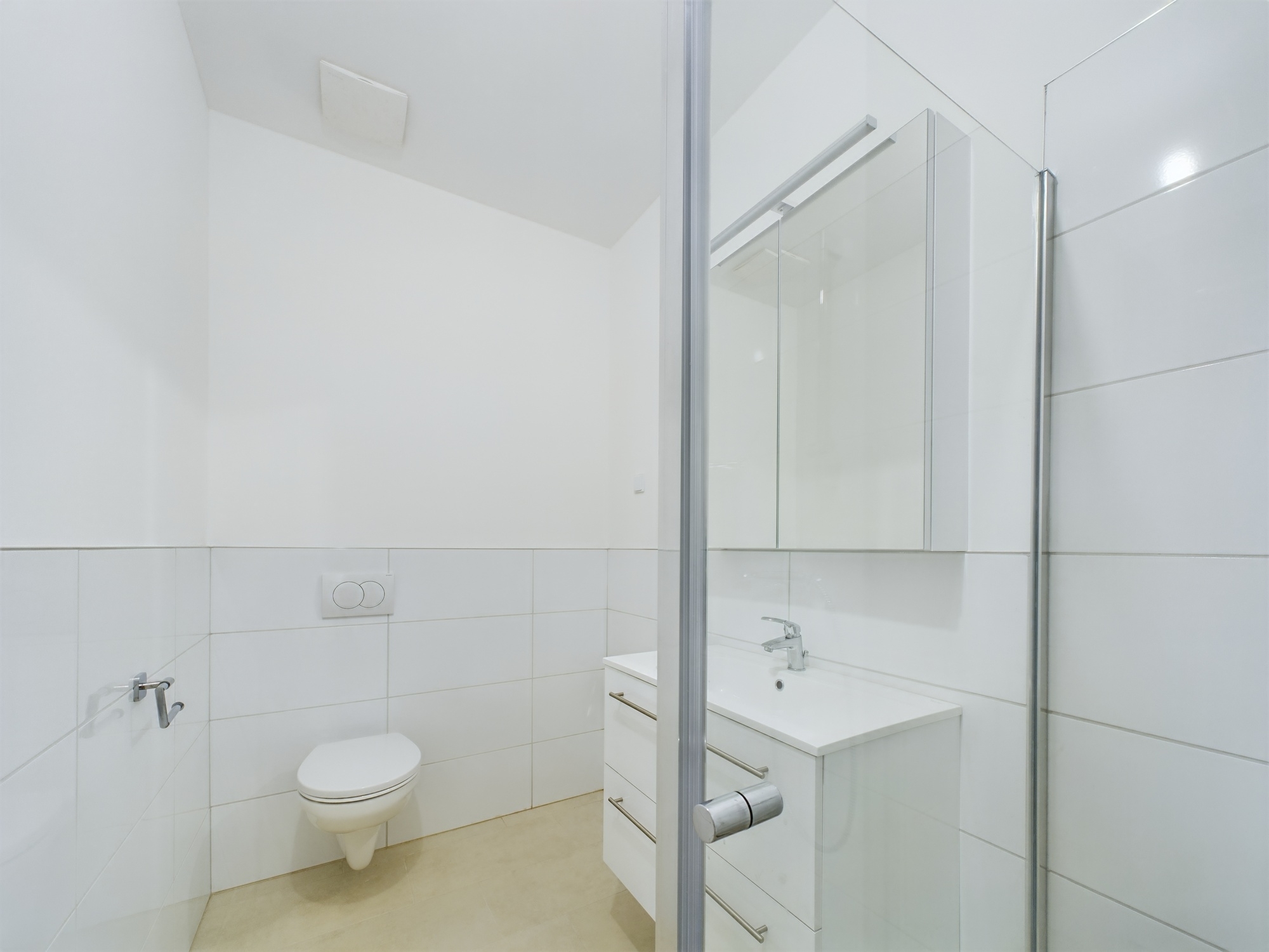 7. emelet / utcai / 63m2 / 1 háló + en suite fürdőszoba + gardrób / 2 wc / előtér / amerikai konyhás nappali